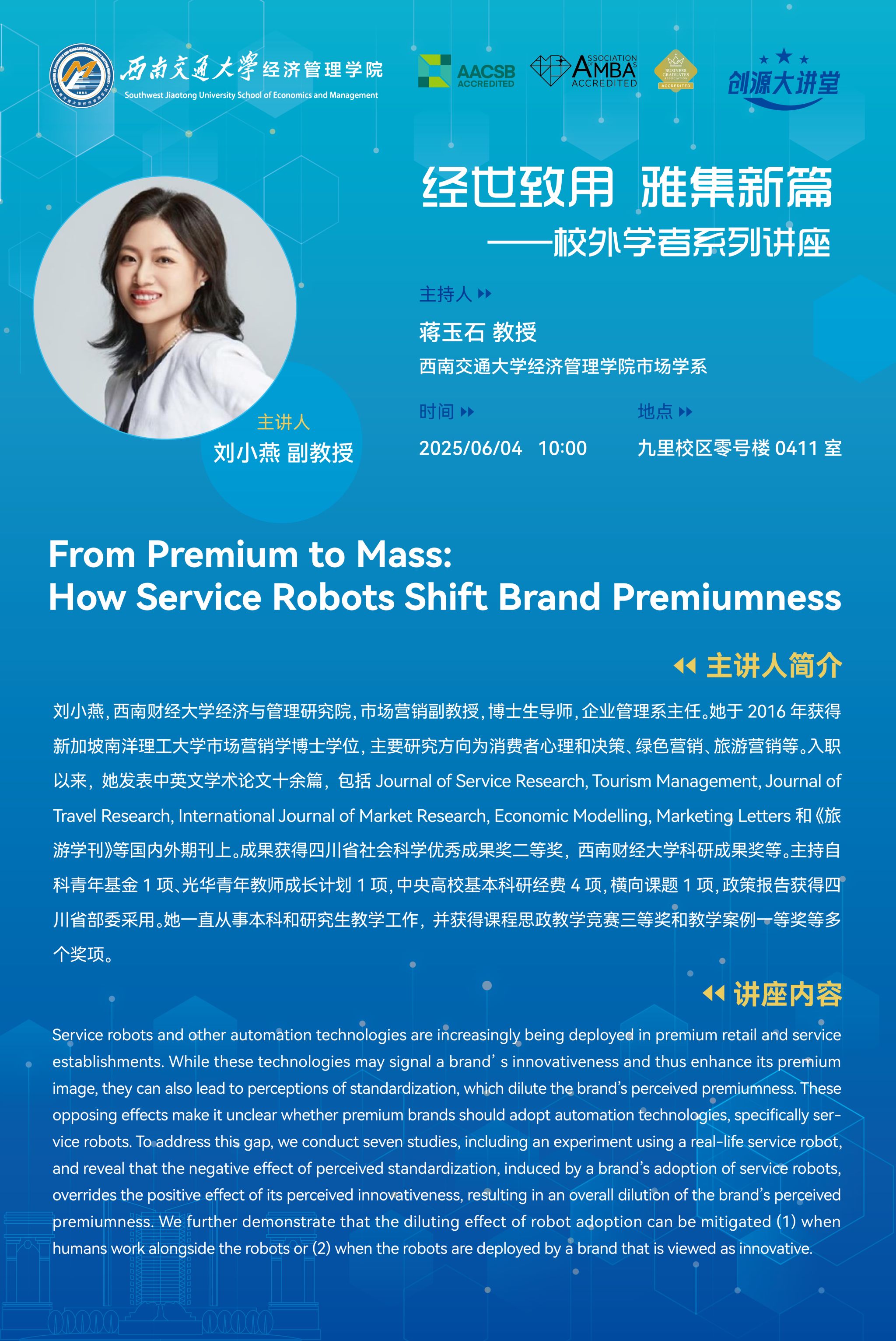 西南财经大学经济与管理研究院刘小燕副教授学术讲座