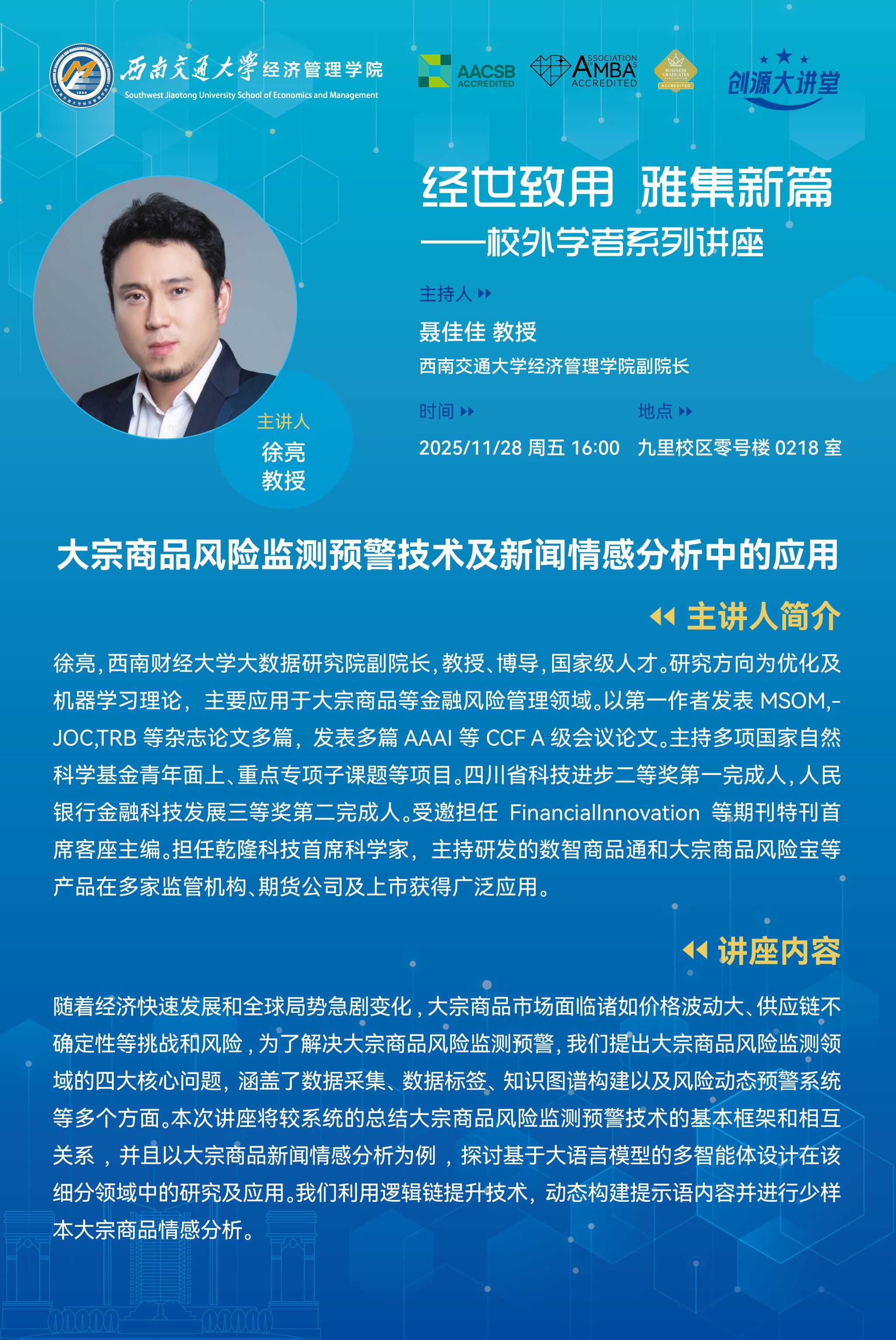 西南财经大学大数据研究院副院长徐亮教授学术讲座