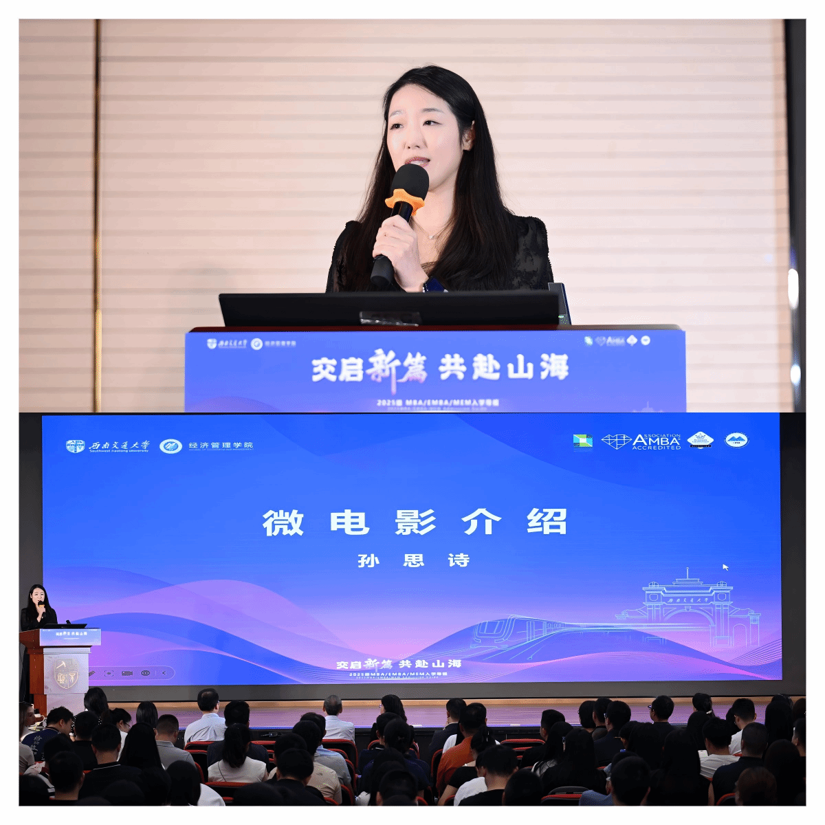 Wang Ruchao, Vice President of MBA Association, introduced the missions and activities of seven student clubs, seven student-led clubs, inviting new members to engage in extracurricular activities that enrich campus life. Liu Lin and EMBA alumnus Zhou Peng shared powerful reflections from their participation in the renowned Gobi Desert Challenge, calling on new students to carry forward the SWJTU spirit of "Fortifying Oneself to Ceaseless Activity".