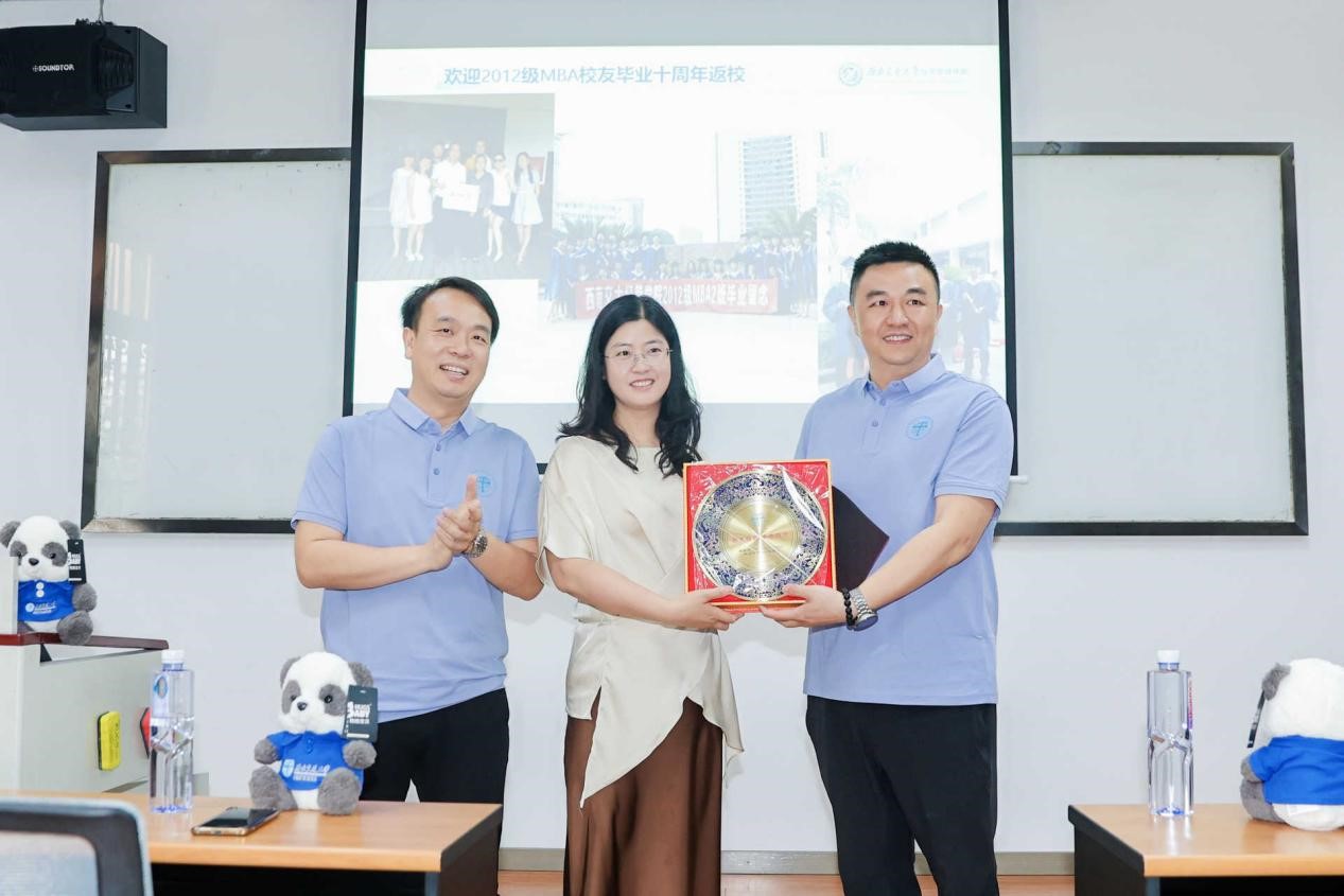 Alumnus FENG Tao shared how his SEM education shaped his career. “The knowledge I gained from courses like Strategic Management was instrumental in my transition to a professional manager role,” he said. “The insights from my MBA were also invaluable when I later started my own business.” To express their gratitude and affection for the school, the 2012 MBA alumni presented a homecoming souvenir to the School of Economics and Management to the school.