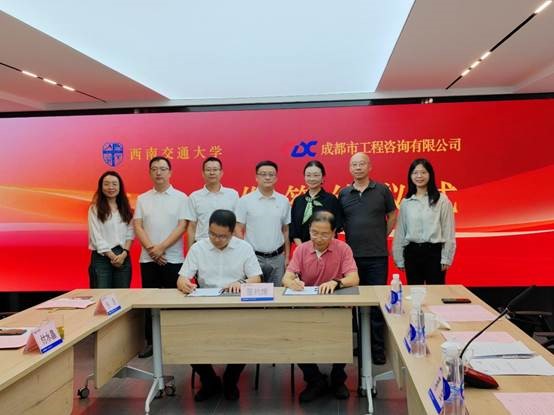 The ceremony was attended by JIANG Jia, Secretary of the CPC SEM Committee; faculty representatives XU Jin, LI Qiang, and ZHANG Qi; CHEN Qihu, Executive Director and General Manager of Chengdu Engineering Consulting Co., Ltd.; and Vice General Managers FU Shuijing and XIE Tao.