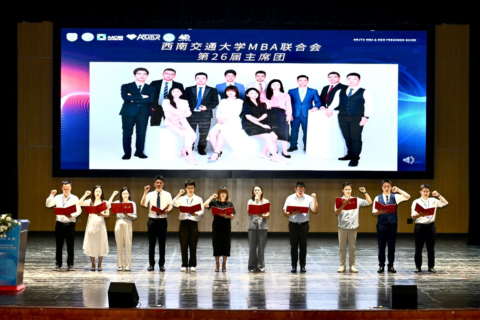 校歌激昂的旋律中,全场师生同声共鸣。伴随着歌声的落幕,2024级MBA&MEM入学导视活动也在掌声中画上了圆满的句点。新的起点,新的征程,希望2024级的同学们能够肩负时代使命,珍惜青春年华,秉承和弘扬“竢实扬华,自强不息”的交大精神,续写辉煌篇章!