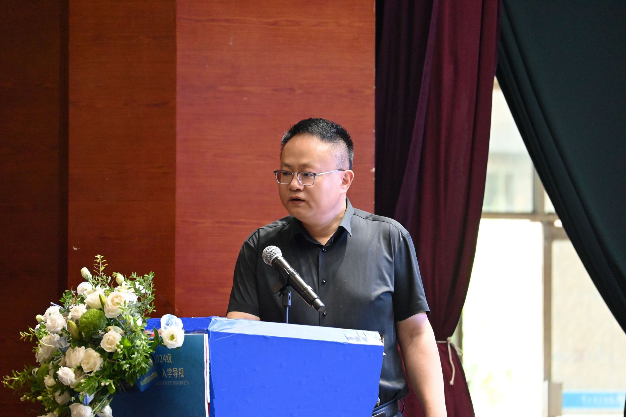 院长韩科致欢迎辞,韩科代表学院全体师生对2024级MBA&MEM新生表示热烈的欢迎。希望同学们在学院的学习生活中,能够充分将个人发展与国家战略、时代需求紧密结合,通过跨学科的学习与研究,深入洞察行业需求,将管理智慧与现代信息技术深度融合,以实际行动助力新质生产力的发展。鼓励大家勇于探索,敢于创新,以扎实的专业知识、卓越的实践能力和世界情怀开阔眼界、扩展思路,主动对接共建“一带一路”,实现高等教育与新质生产力发展双向奔赴。