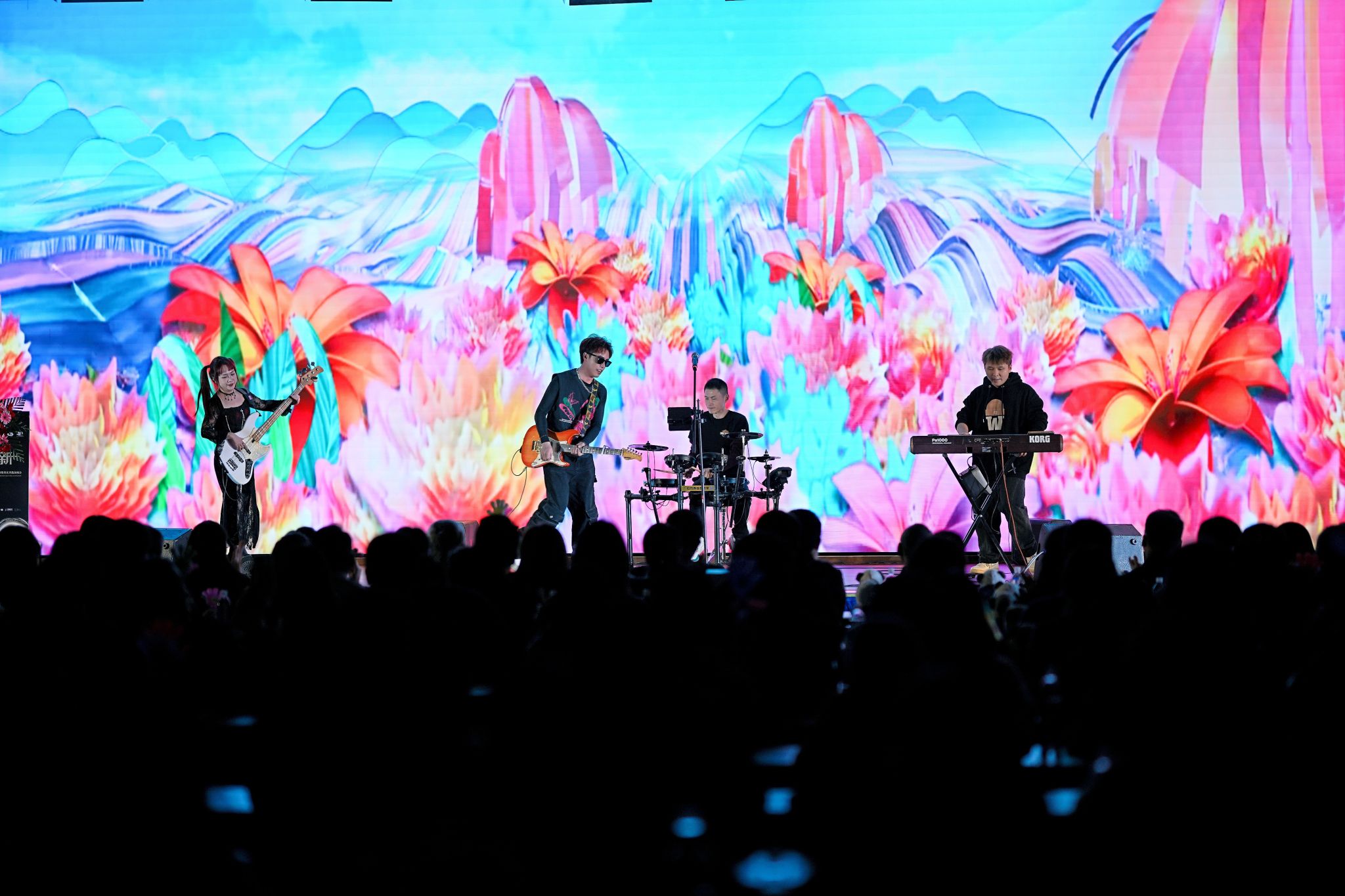 晚会以一曲乐队原创串烧歌曲拉开序幕,优美动听的旋律中蕴含着对花团锦簇未来的无限憧憬。
