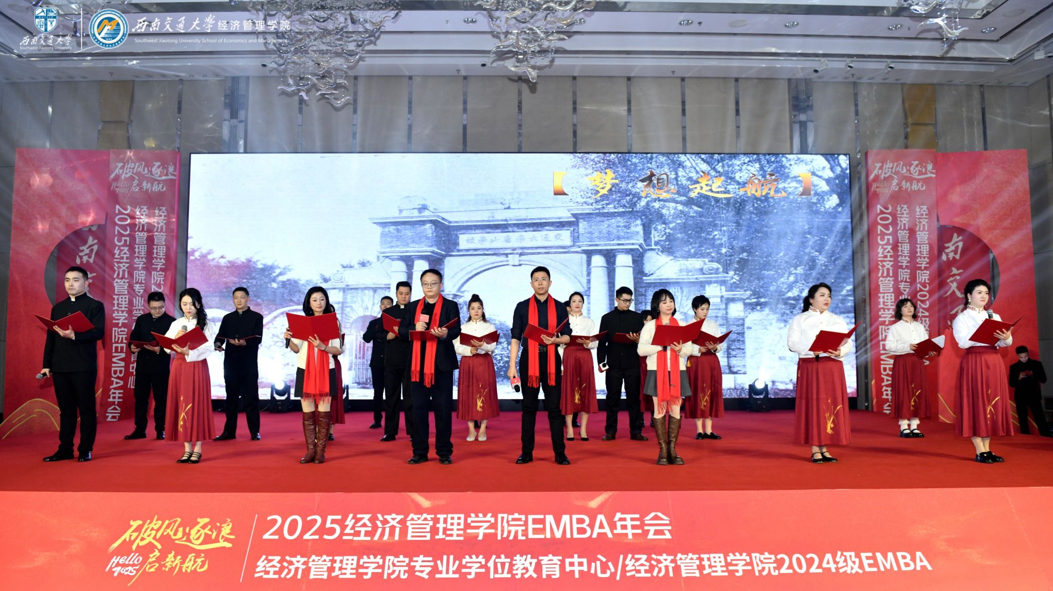 2025“破风·逐浪·启新航”EMBA年会在成都隆重举行,学校党委副书记高平平、学校职能部处相关领导以及学院党政领导班子、师生及校友代表齐聚一堂,共襄盛会。
