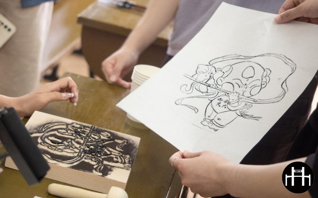 前期项目组成员在深入调研绵竹年画后,结合交大特色对其进行了年轻化二次创作,创作出别具一格的年画娃娃形象,并以此为切入点开展体验拓印年画活动。
