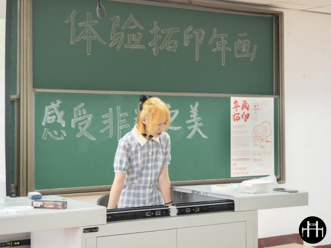同学们在指导下独立体验年画制作工艺:一贴、一按、一揭。拓印过程中,参与的同学不约而同地放轻了动作,小心翼翼地拿起抹刷,铺上宣纸,认真拓印,体验年画制作的乐趣,当宣纸揭开的那一刻,四下响起不绝的惊叹声。“绵竹年画×交大”的年画娃娃憨态可掬,极大点燃了同学们的热情。活动现场井然有序,同学们兴致高涨。