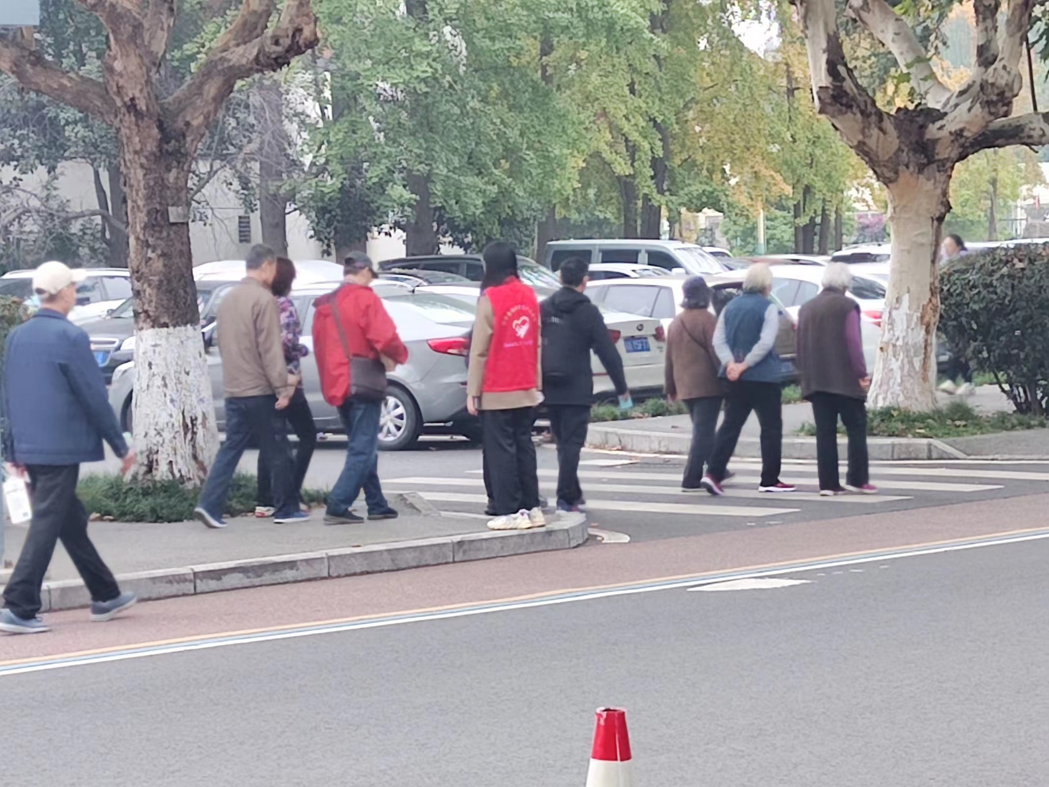 拿到活动券后,老教师们携手结伴,沿着唐臣路前行,一路上欢声笑语,或互道家常,共赏风景;或回首当年往事,英姿焕发。老教师们呼吸着清甜的空气,在校园内谈得尽兴,走得愉悦。志愿者们时刻关注路况,确保老教师们在健身走活动中的安全。在沿途工作的志愿者们见到老师,纷纷问好,耐心地提醒老师们在交谈之余也要小心台阶,注意车辆。