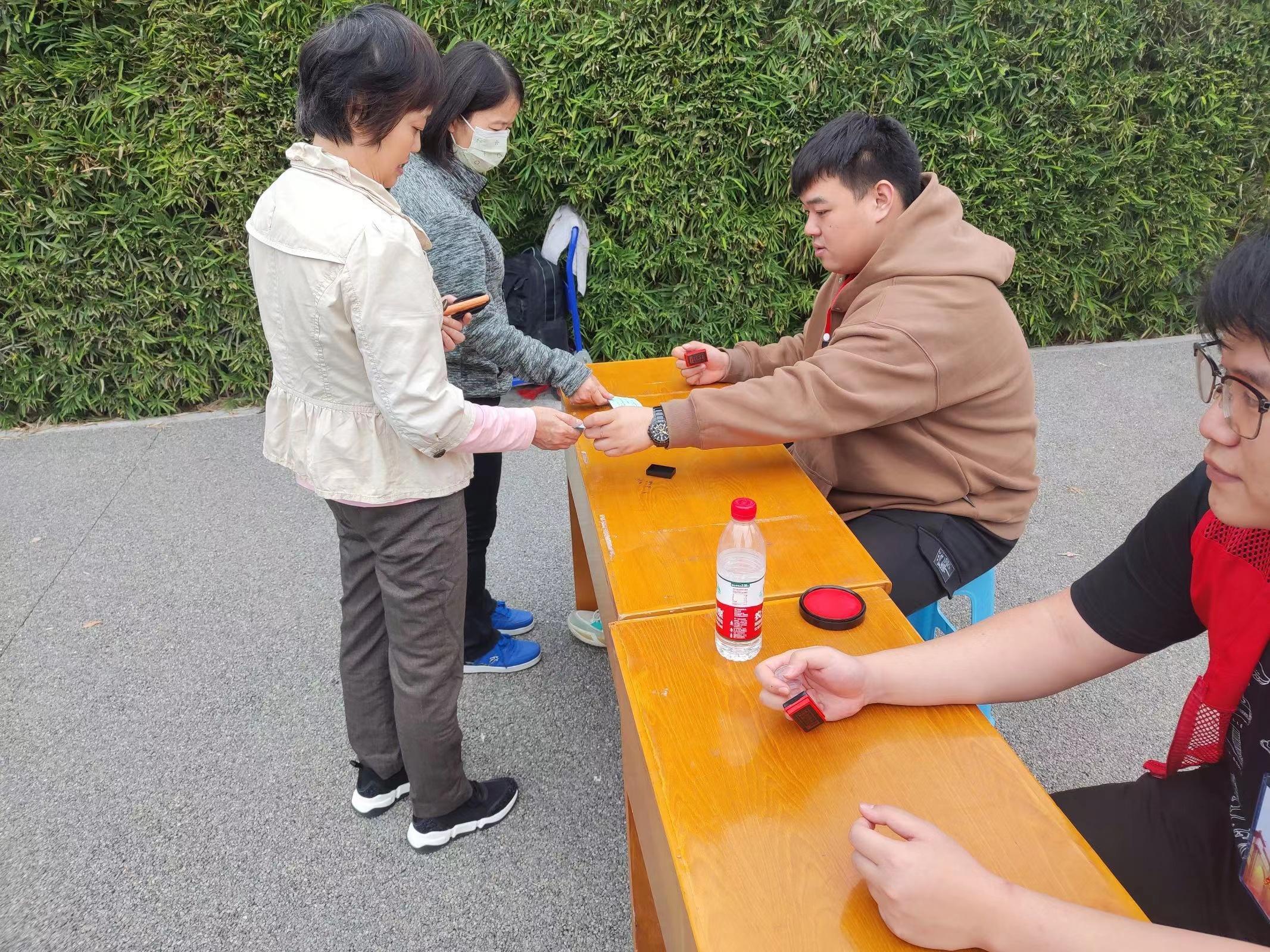 青年志愿者协会三十名志愿者们在离退处老师的带领下到达工作岗位上,以饱满的热情迎接准备参与活动的老教师们。上午八点五十,神采奕奕的老教师们与昔日同事重聚,在相互问候的同时,他们陆续来到指定地点领取活动券。在起点处的志愿者们工作细心,满怀热情,耐心为老师们指引方向,解答问题。