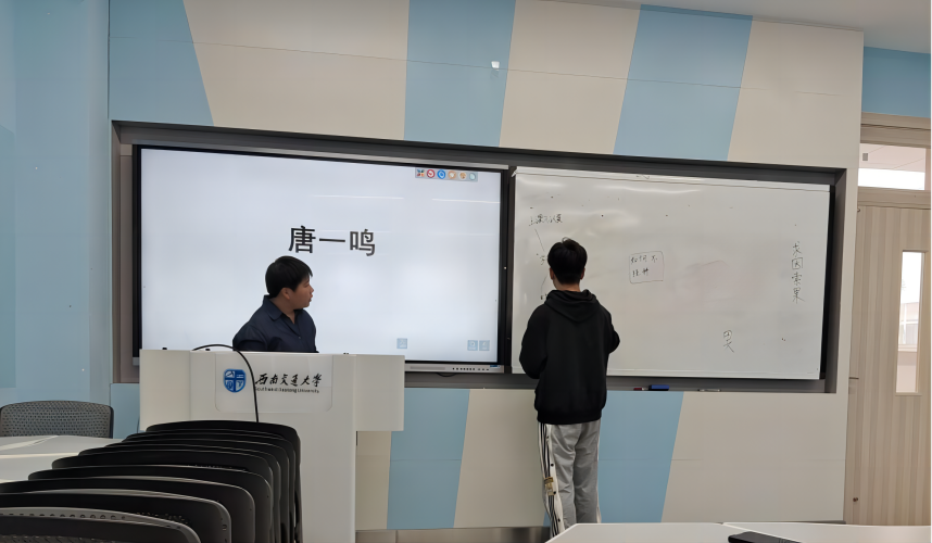 接下来,进入了气氛热烈的互动环节——求因索果。采用抽签的方式,让同学们提出问题,找出问题出现的原因,共同探索解决的办法,以此相互交流学习方法与经验,互动性强,启发性高。通过这一环节鼓励同学们自我探索,培养同学们主动解决问题的能力,在新时代不懈奋斗,建功立业。