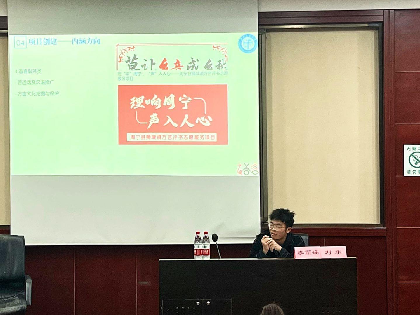 会议伊始,刘承以“走出校园”四字,言简意赅地介绍了实践活动的本质。随后,他结合实践活动的目的与同学们对实践活动的期望,详细阐述了实践活动对社会与对同学们自身的意义,激发了同学们对开展实践活动的兴趣。接着,刘承分别从“模式”、“领域”、“内涵”三个方面讲解了项目创建环节的相关细节并配以视频加深同学们的理解。围绕讲解项目创建的内涵方向,他强调了项目的“专业化”、“应急化”、“文化自信化”,并剖析了这三个关键词的深层含义,给同学们带来了启发。最后,刘承分享了自己对社会实践的见解,强调要注重活动的创新性,引发了同学们对实践活动的深度思考,为同学们未来开展实践活动提供了新的方向。