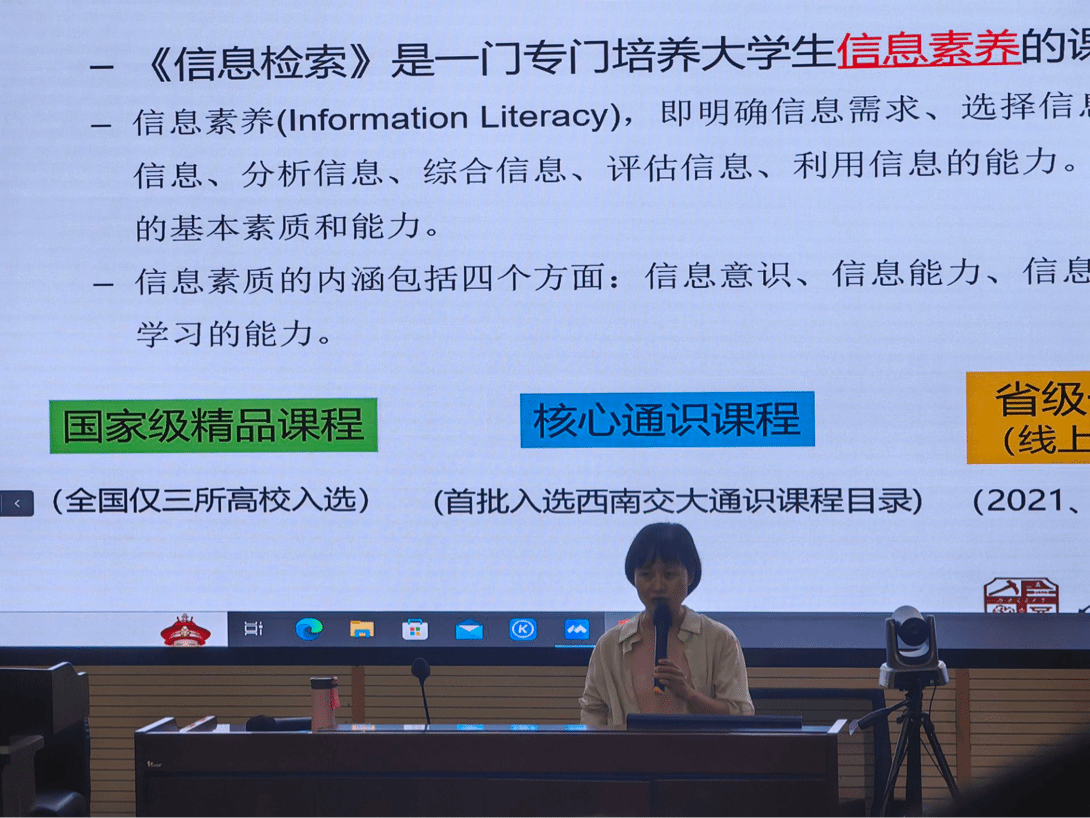 本科2023级在九里校区J0202和J0215举行了图书馆入馆教育宣讲活动,本次宣讲由图书馆何雪梅老师进行主讲。何雪梅通过幽默的形式与详实的讲解,向同学们介绍了图书馆的概况、相关活动、图书馆的功能以及借阅纸质书籍和电子书的流程,旨在帮助同学们更好地利用图书文献资源。