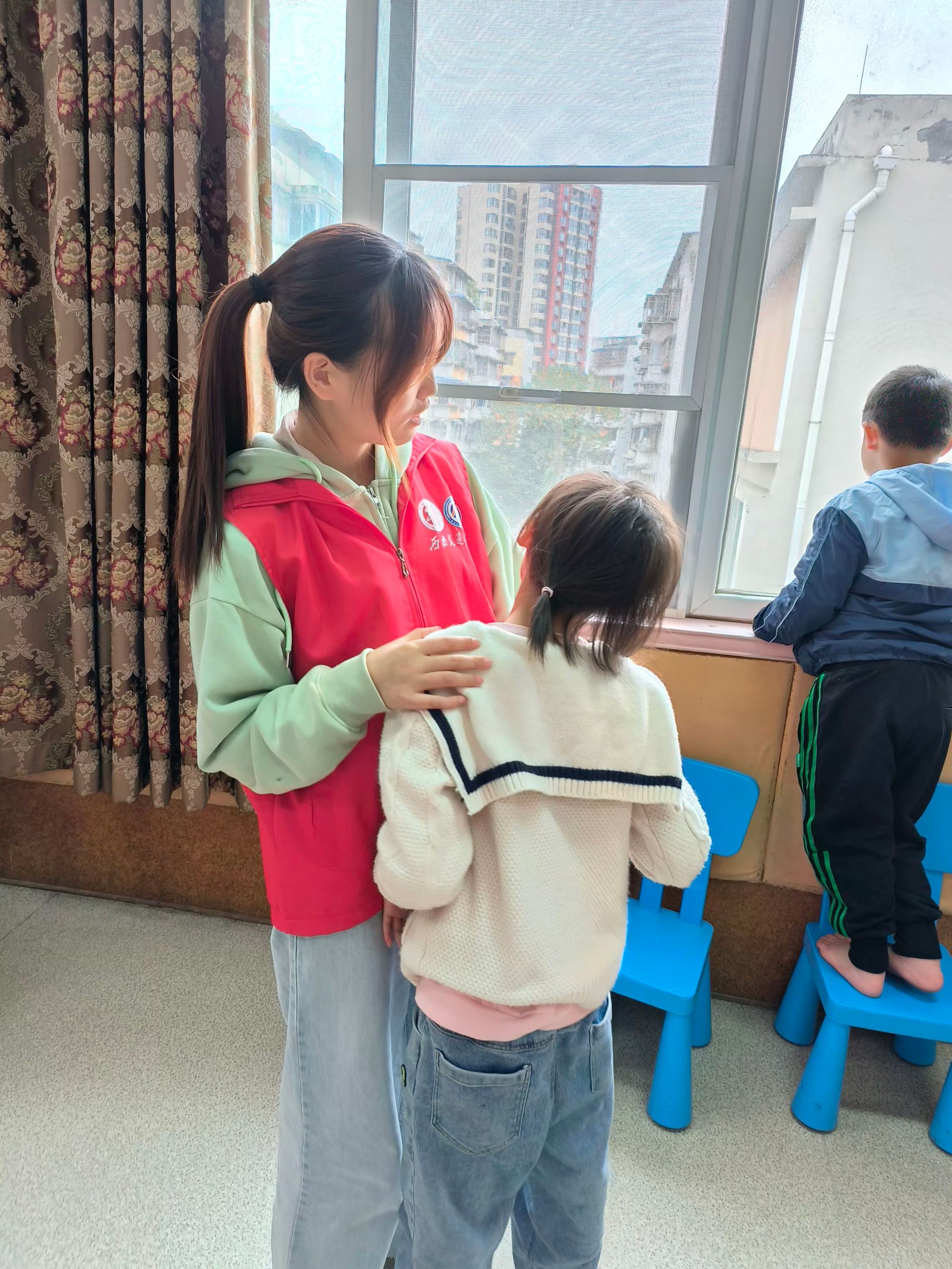 2023年10月19日下午两点,“经管青协”来到成都市武侯区善工家园助残中心开展志愿服务活动。在简单了解楼层概况及注意事项后,志愿者们跟随老师来到孩子们所在的教室。