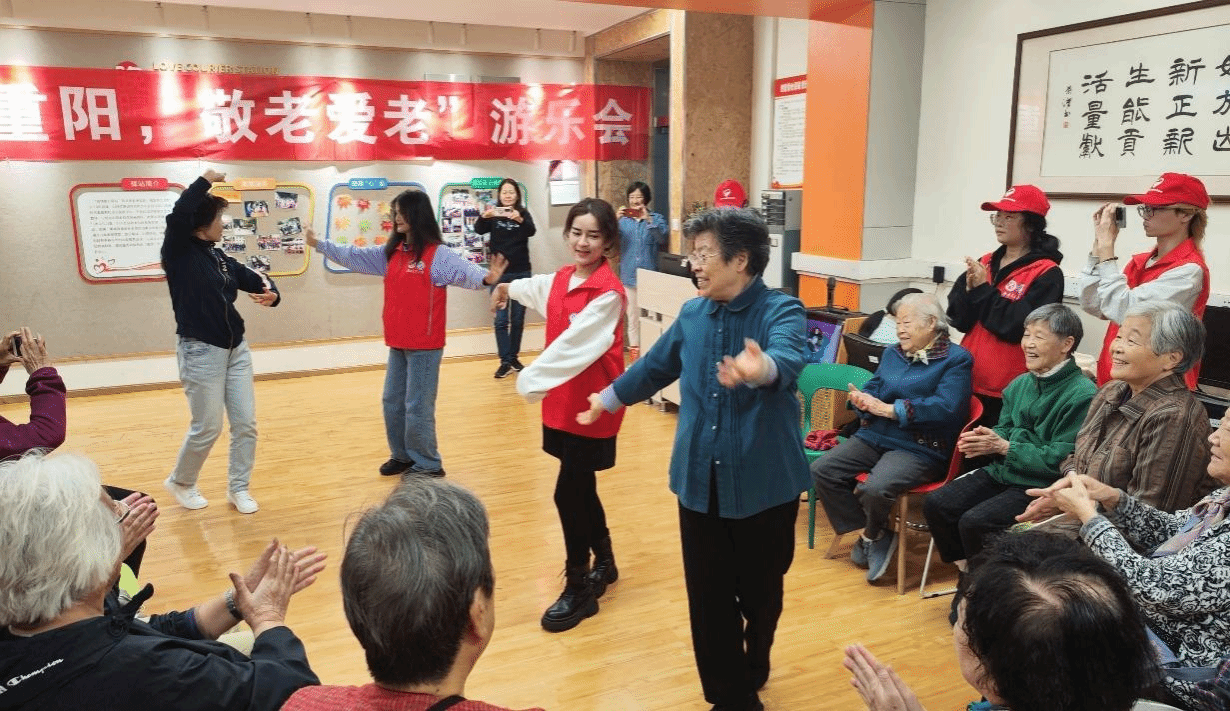青年志愿者协会承办的“浓情重阳,敬老爱老”游乐会活动于10月26日下午在晚晴苑顺利开展。活动旨在通过歌舞互动游戏,丰富我校离退休教职工的文化娱乐生活,弘扬中华民族尊师敬老的优秀传统美德;同时加强青年学生和老教师之间的交流,增进师生之间的感情。