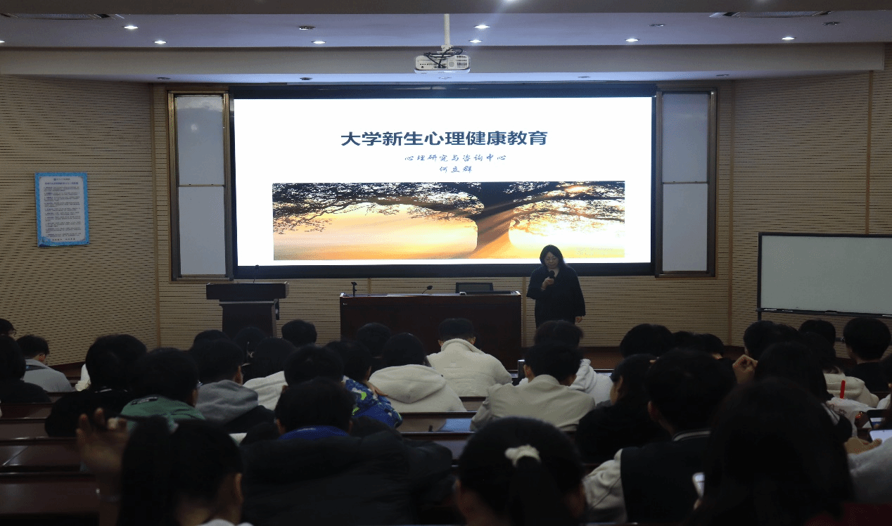 本科2023级在九里校区零号楼0202教室举行了心理健康教育专题讲座。本次讲座由本科2023级辅导员苏扬老师主持,心理研究与咨询中心的何立群老师主讲。何老师通过详实的心理学理论与生动具体的事例,揭开了心理问题的神秘面纱,向同学们科普了心理健康与心理问题的定义,介绍了面对心理压力时应该采取的措施,旨在帮助同学们更好地享受大学生活,拥有健康人生。