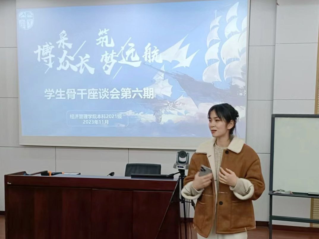 本科2021级于J0215教室开展“博采众长,筑梦远航”第6期学生骨干座谈会。本科2021级辅导员张先凌、钟文婷出席,全体班委参会。