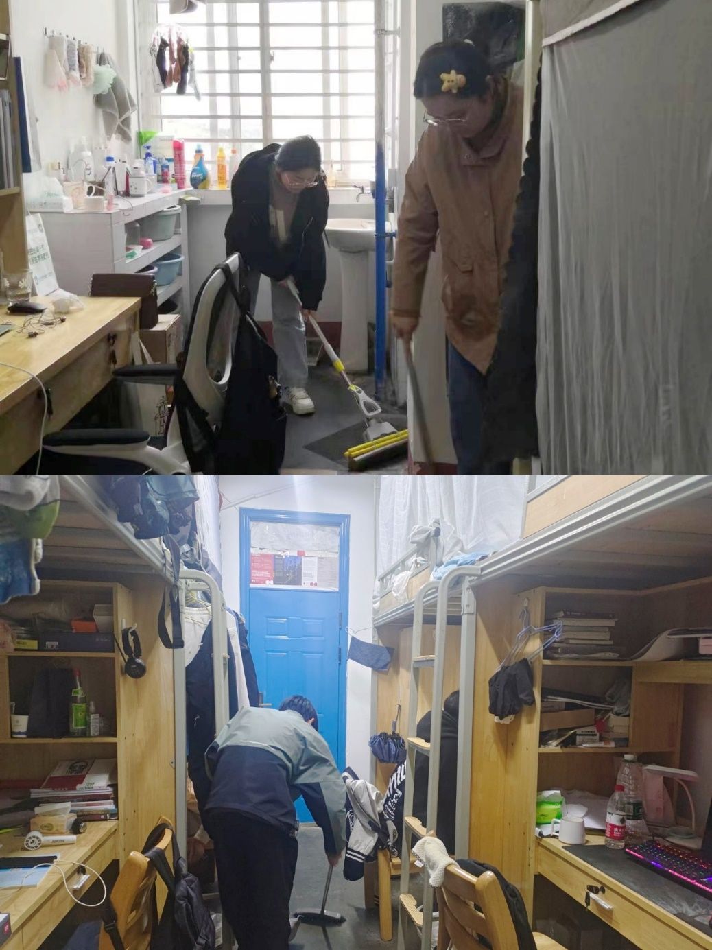 劳动之风吹进校园,同学们忙碌的身影随处可见。学院持续加强学生园区的劳动教育建设,组织本科各年级学生开展宿舍卫生大扫除劳动实践活动,美化宿舍文化氛围,提高学生生活质量。宿舍作为学生学习、生活的重要场所,常态化的清扫必不可少,学院组织各年级开展宿舍卫生大扫除,让学生亲身体悟劳动之美,亲自打造洁净之所,培养良好的生活习惯。