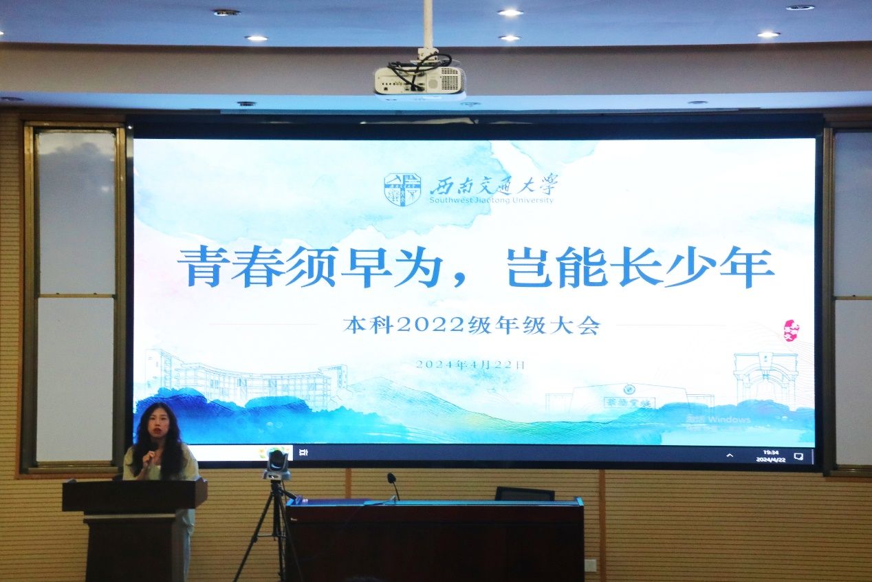 本科2022级在九里校区J0202教室举行了年级大会。本次会议由本科2022级辅导员薄慧、贺小轩主持,2022级全体学生参加。