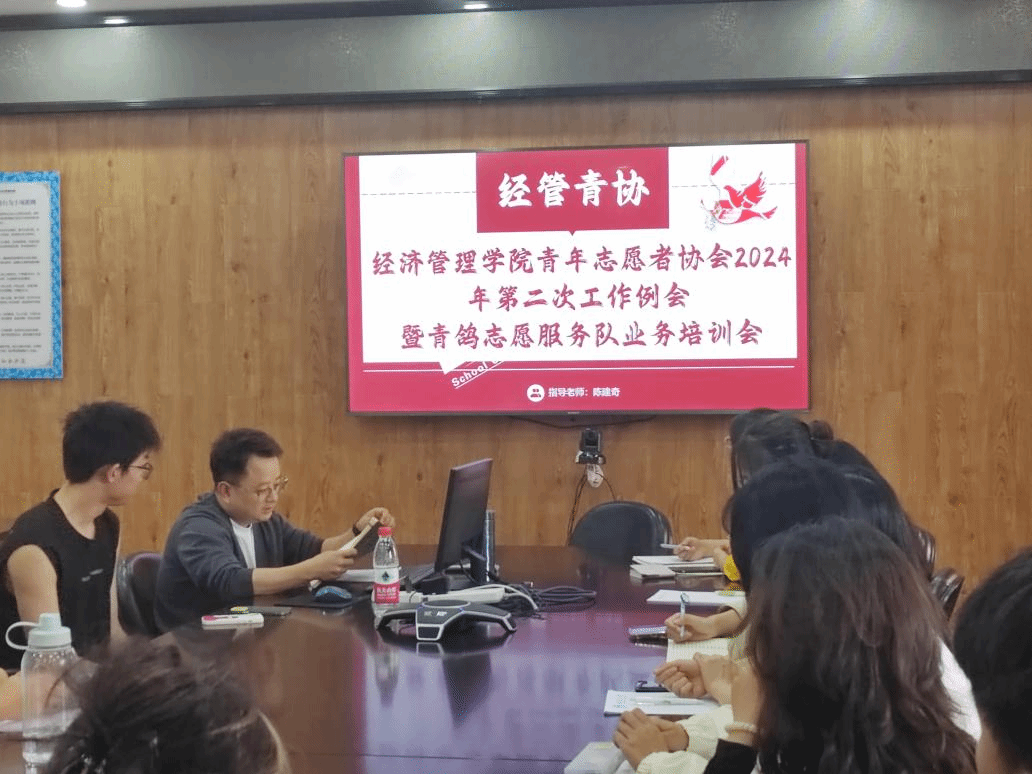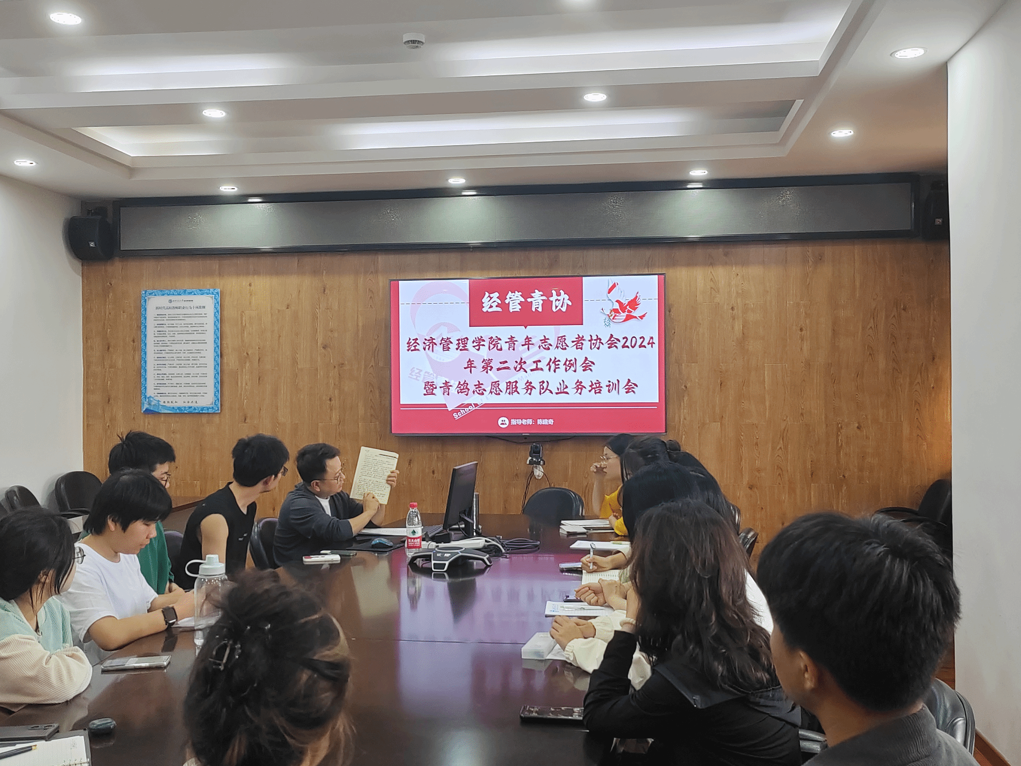 青年志愿者协会在J0607教室组织了2024年第二次工作例会暨青鸽志愿服务队业务培训会。