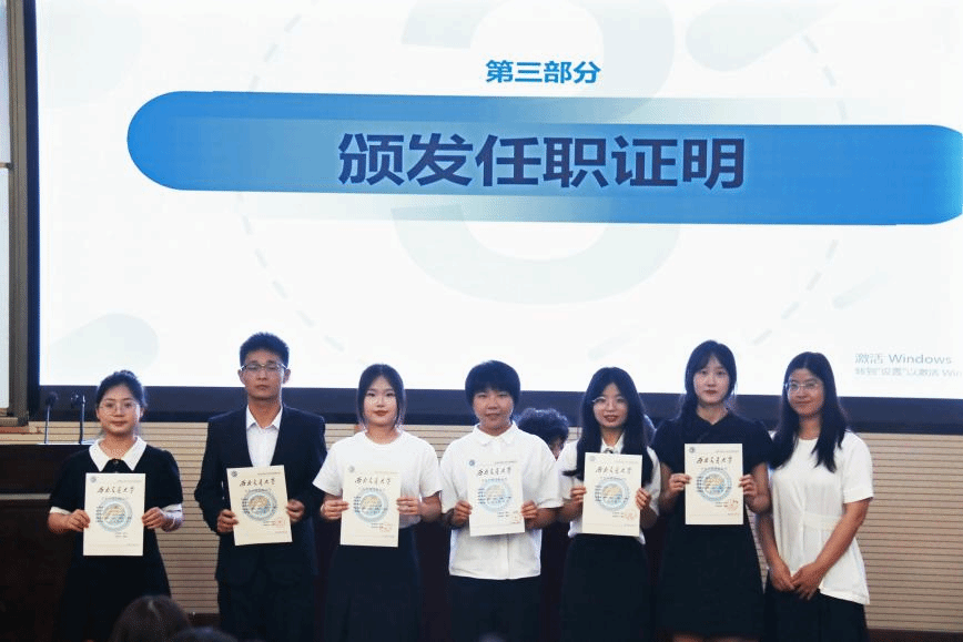 接着,余小英副书记为所有学生组织的主席颁发了正式的任职证书,以表彰他们过去一年在学生工作中的努力与贡献。余书记对即将接棒的新一届学生干部表达了深切的期望,鼓励他们在继承中创新,续写辉煌篇章。