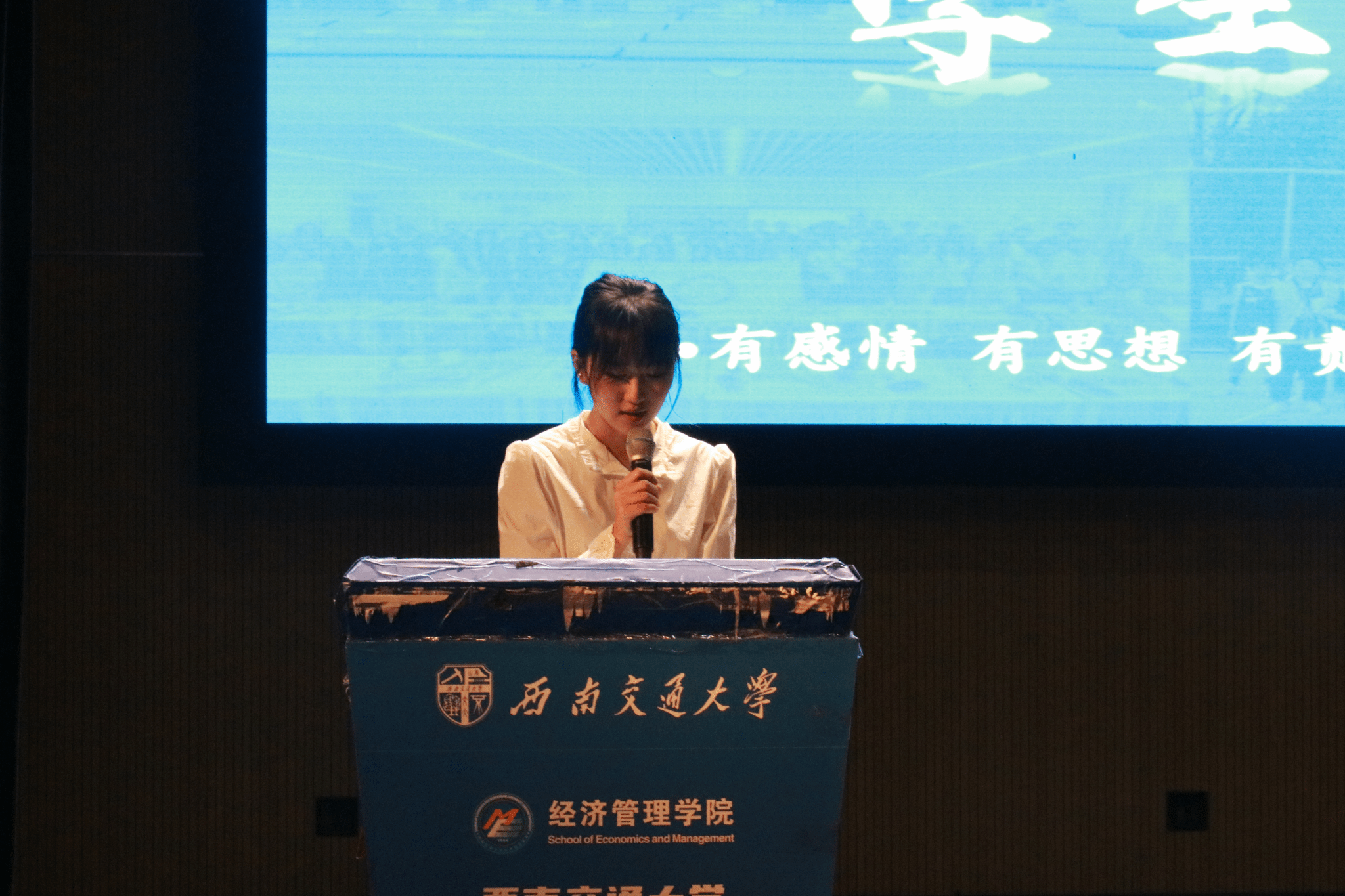 对新同学们表示热烈欢迎,并强调团学组织在学生成长中的重要作用。团学组织通过各类活动展现学生风采,提升学生能力。同时,她也呼吁新生们积极加入团学组织,找到最适合自己的舞台,勇敢迎接挑战,丰富大学生活,书写属于自己的精彩篇章。
