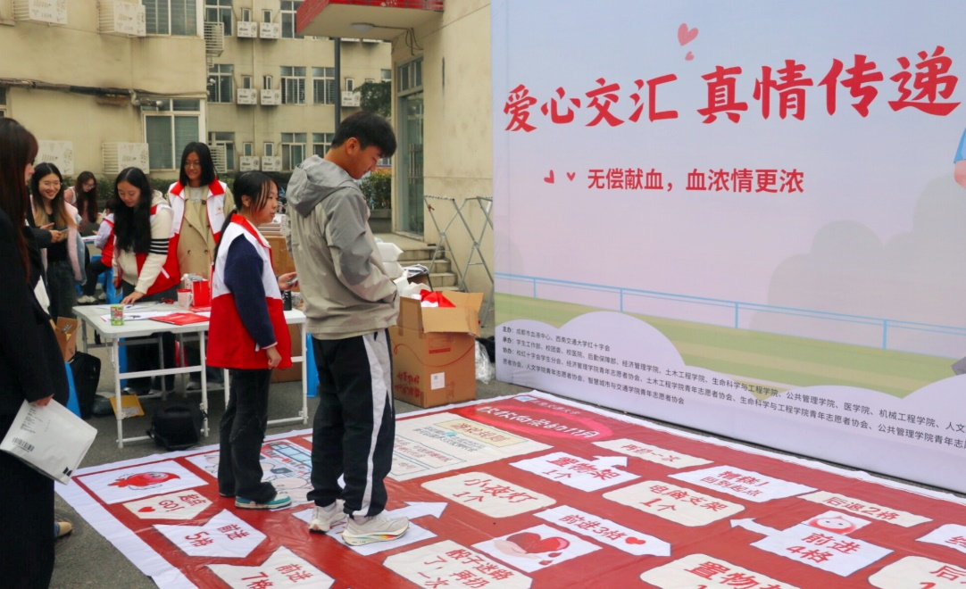 活动设置了“爱的飞行棋”小游戏,为献血活动增添了许多趣味性和互动性。活动期间,献血成功的师生将获得三次投掷骰子的机会。参与者可以根据骰子的点数在游戏棋盘上前进,到达特定的格子后,则可以获得对应的奖品,如钥匙扣、小推车、置物架、小夜灯等。这一创意小游戏不仅为献血活动增添了乐趣,还吸引了更多师生的积极参与。许多师生在完成献血后,兴致勃勃地参与到游戏中,现场气氛热烈而愉快。通过这种方式,不仅提高了大家的参与度,还增强了活动的趣味性和互动性,让更多的人在轻松愉快的氛围中体验到奉献爱心的快乐。