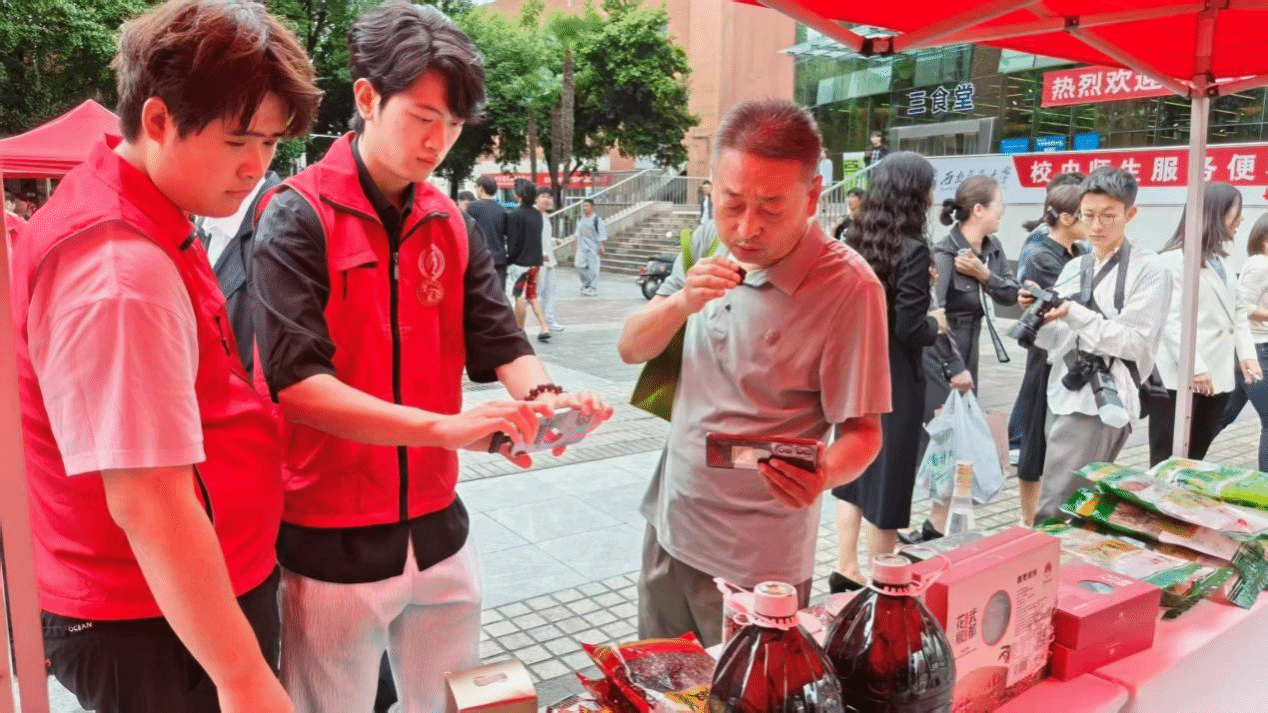 e脉相通社会实践队全力协助由校团委牵头组织的陇南市成功举办“消费帮扶、供销行动”暨陇南农文旅产品(成都)高校行现场推介活动。实践队员们运用新媒体技术,通过抖音直播方式向成都高校学生和社会消费者推广陇南优质特色产品。