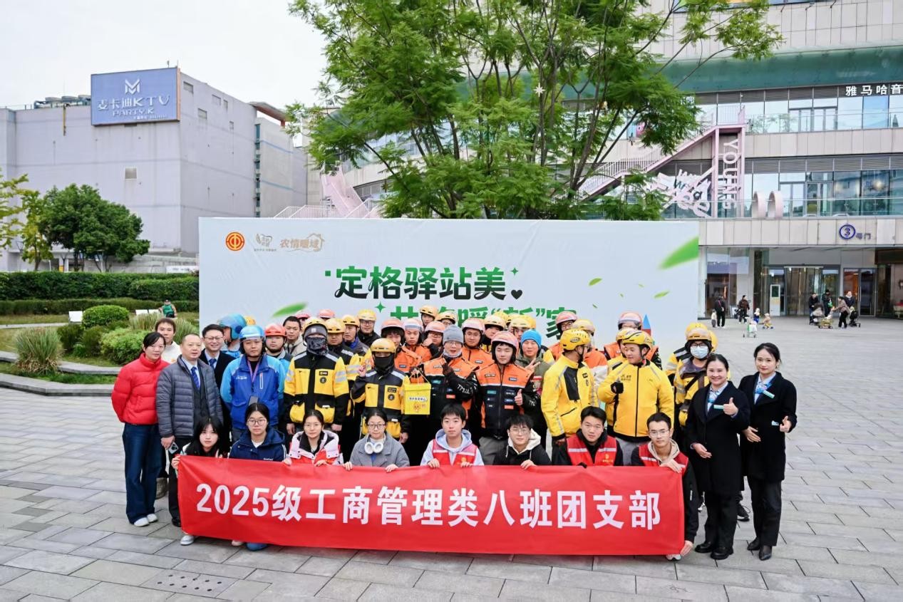 2025级工商管理类8班团支部的志愿者,以青春之力助力公益事业,与九里堤街道总工会和农行星汉路支行携手将“共筑暖心家”的理念转化为实实在在的行动,让新就业形态劳动者感受到了实实在在的归属感与温暖。此外,同学们在与新业态工作者的交流中读懂了生活的不易,接触到了新时代行业的变化。在实践中拓宽视野,增长知识,成长自己。