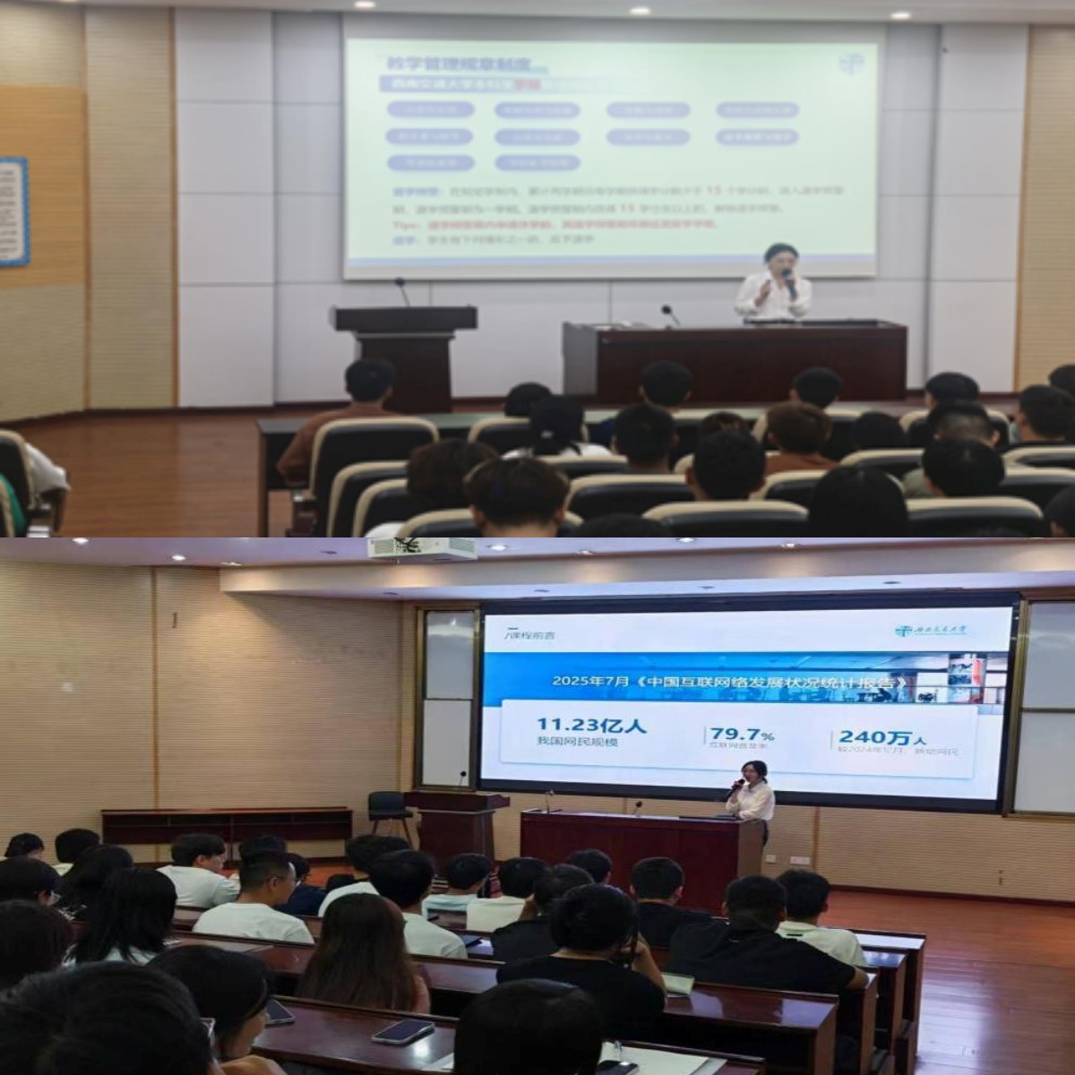 通过学生管理规定大会暨年级大会,辅导员游婷老师为新生详细讲解学籍管理、成绩评定、考勤纪律及学术规范等核心制度,重点强调学术诚信的底线要求,帮助新生迅速厘清行为边界,树立规矩意识。