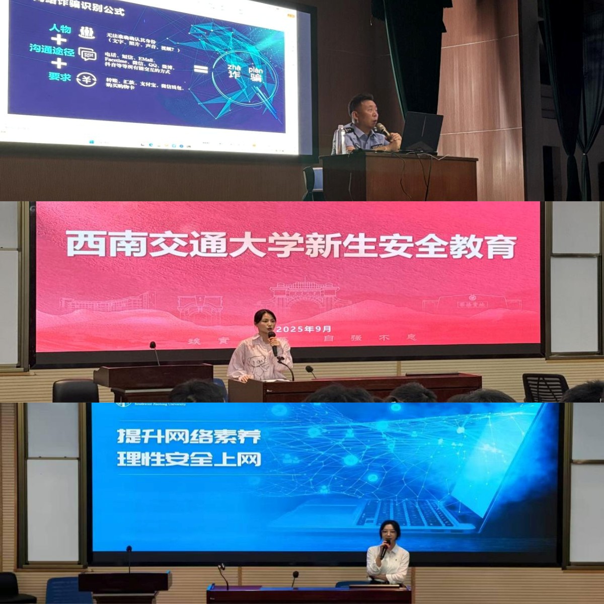 学院启动警校协同机制,特邀辖区赵磊警官入校举办防范网络诈骗专题讲座,剖析新型诈骗手法,提升学生实战鉴别与应对能力。同时,辅导员林宇婷老师围绕国家安全、消防安全、数字安全等核心领域,开展系列案例教学,强化新生的风险防范意识与自我保护能力。