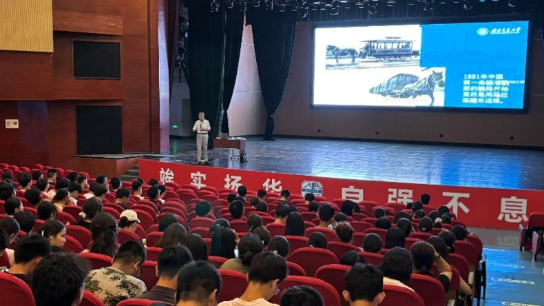 邀请荣获“最美交大人”称号的梁锦堂老师担任主讲人,深情讲述学校“三次迁校、五次更名”的奋斗历程,生动诠释“竢实扬华,自强不息”的交大精神内核,深化新生的爱校荣校情感与文化归属感。