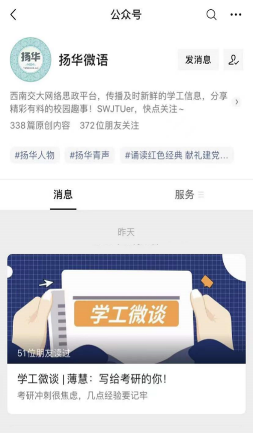 了解到大多数同学有考研计划后,她着力打造了更全面细致的考研系列讲座,其中囊括了考研形势分析、考研动员大会、学长学姐经验分享、专业指导讲座等内容。针对考研公共课程,她联系开展了英语升学指导讲座,组织同学们进行考研数学模拟考试,让同学们充分体验考试过程。在考研倒计时一百天,她为考研同学精心设计并制作了考研100天倒计时日历和一“研”为定大礼包,为考研学子加油鼓劲。在考研冲刺期,她根据自己的经验撰写“学工微谈——写给考研的你”,提醒学生不要焦虑、放平心态。最终的结果也并没有辜负她日复一日的辛勤操劳,2018级考研同学喜报频传,考研上线的人数创学院历史新高。
