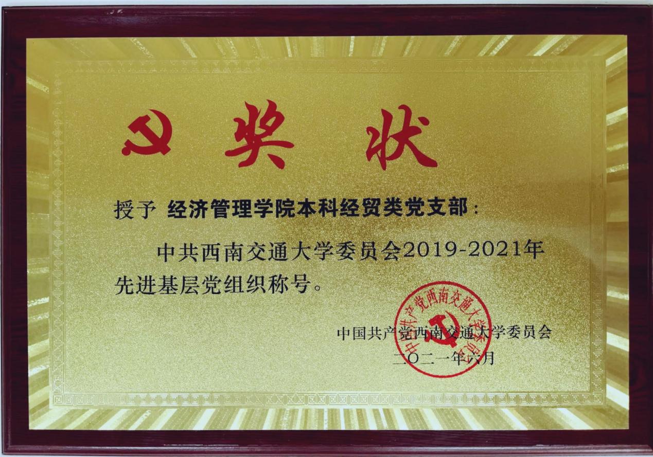 委员会2019-2021年先进基层党组织”荣誉称号,作为本科经贸类党支部副书记,薄慧为了党支部的建设贡献了自己的一份力量。