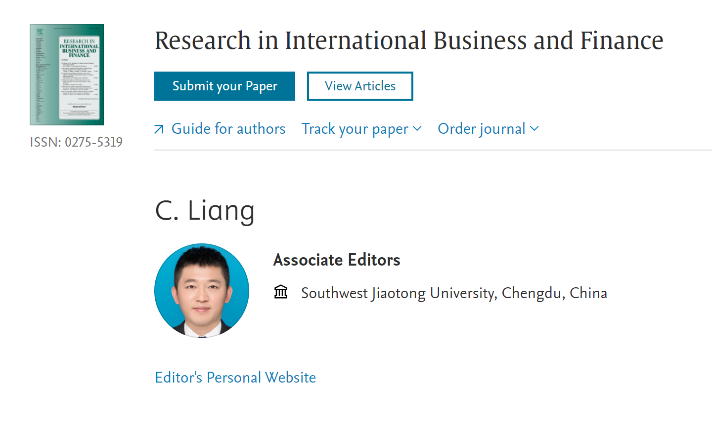 梁超老师受美国阿克伦大学金融系教授John W. Goodell主编邀请,正式加入Research in International Business and Finance编委会,出任该刊副主编。Research in International Business and Finance是国际SSCI索引期刊,JCR1区,主要研究领域为金融市场、金融机构、行为金融等方面。2021年最新影响因子为6.143。