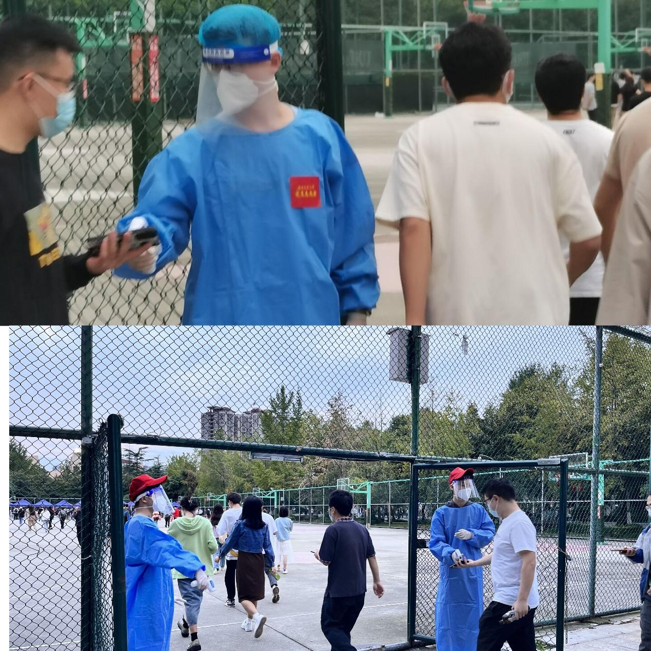 图2 支部预备党员董津康、入党积极分子牛韬核酸检测志愿服务照片
