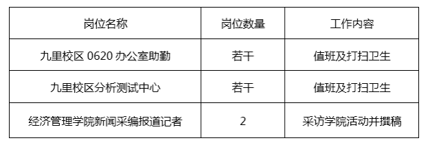 (本次招聘不面向2024级新生,新生勤工助学岗位招聘将在学校困难认定结果出来后进行。)