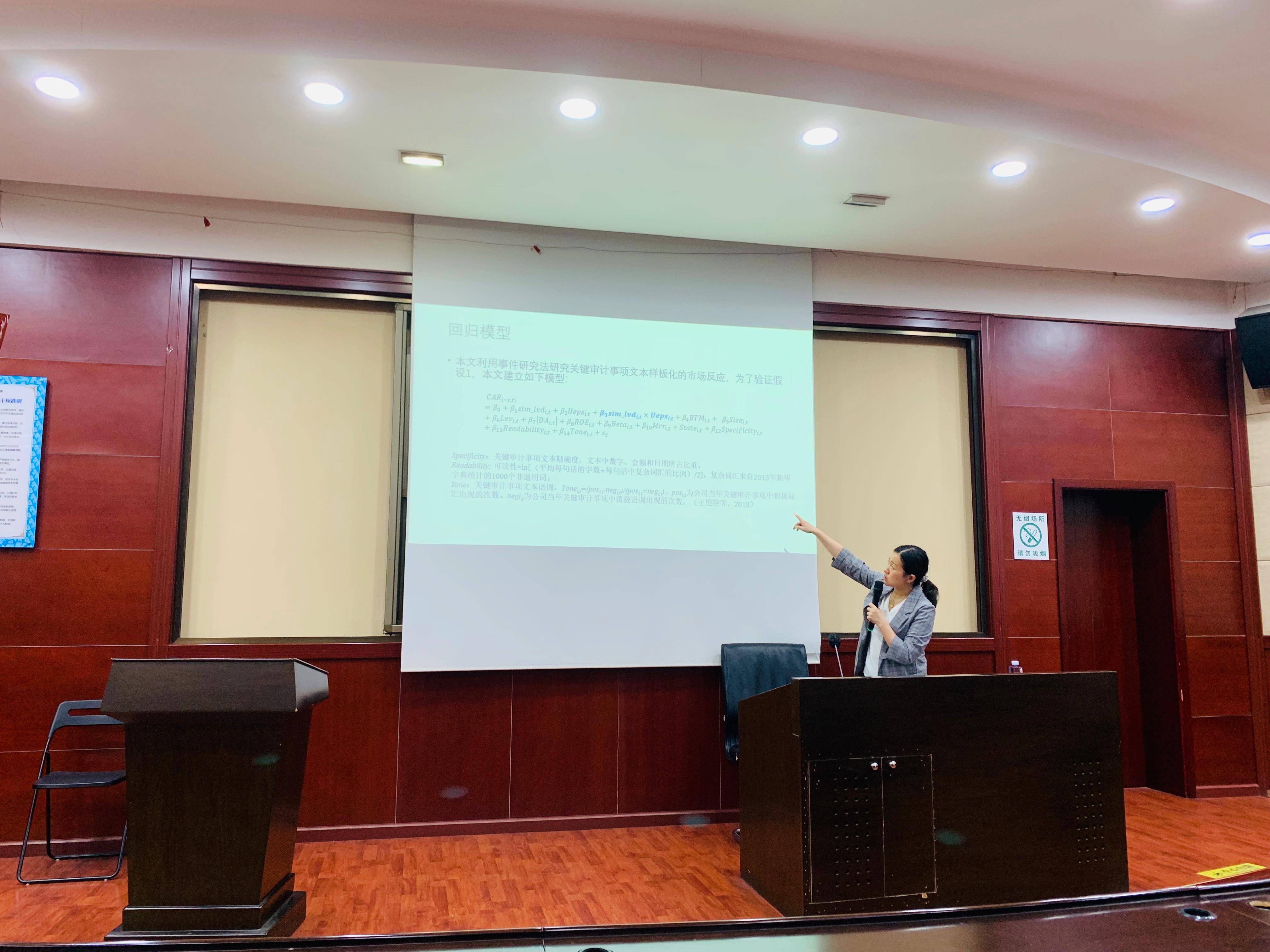 周教授首先介绍了该文章的研究背景,通过对政策理论以及现有研究的梳理总结,她指出,目前我国关键审计事项的披露自发呈现出样板化,同时,样板化还可以提高信息的可比性,降低投资者处理信息的成本,帮助投资者做出有效决策。