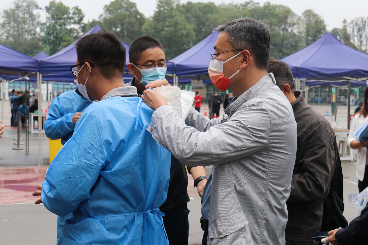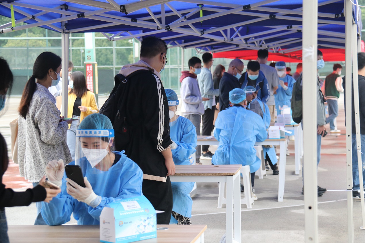 的老师和同学们也积极响应,主动承担起核酸检测现场的志愿服务工作,为疫情防控贡献自己的一份力量。