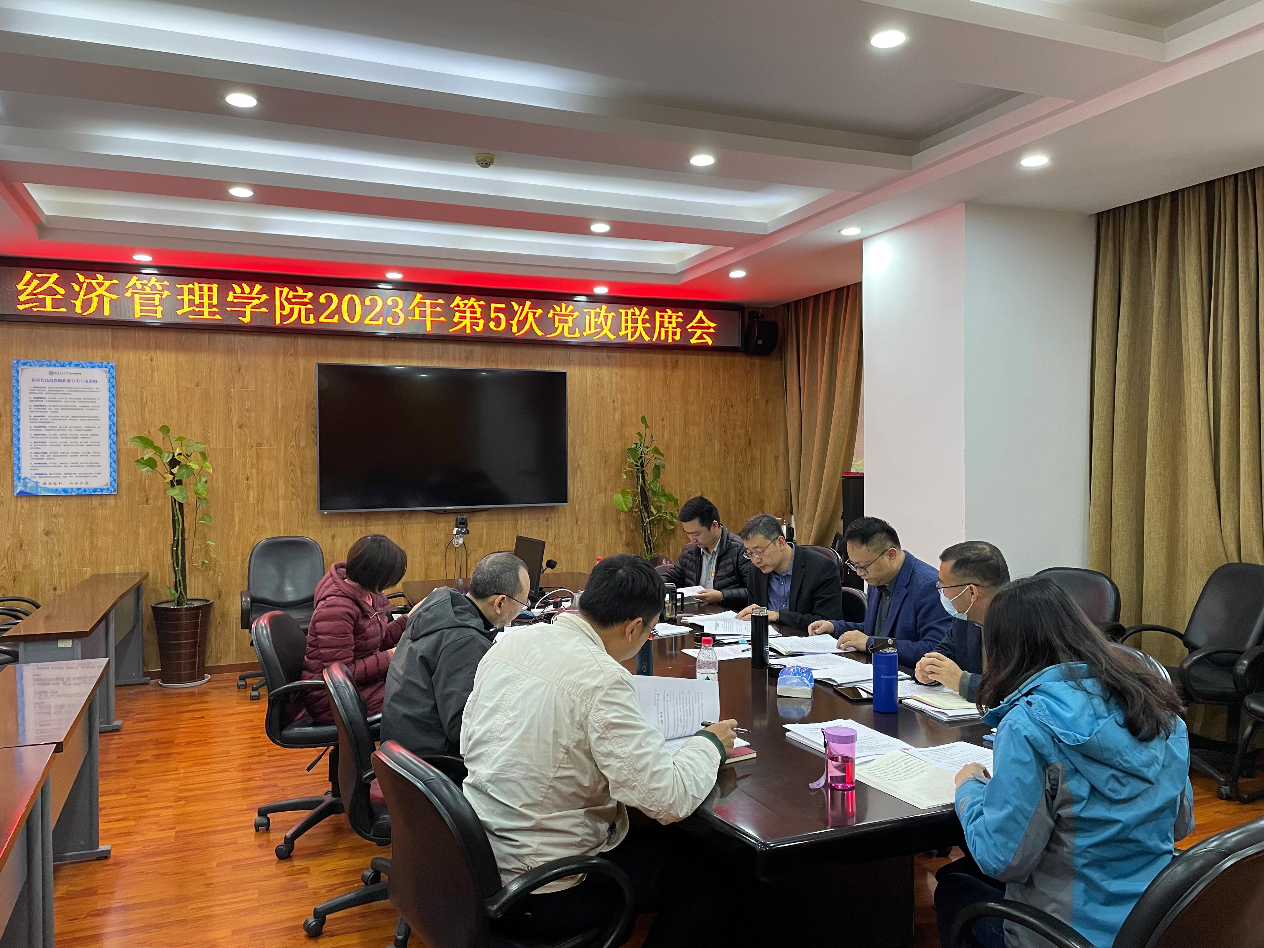 学院2023年第5次党政联席会议于3月23日上午10:00召开。会议按照议题分别由学院党委书记王斌、执行院长郭强主持。