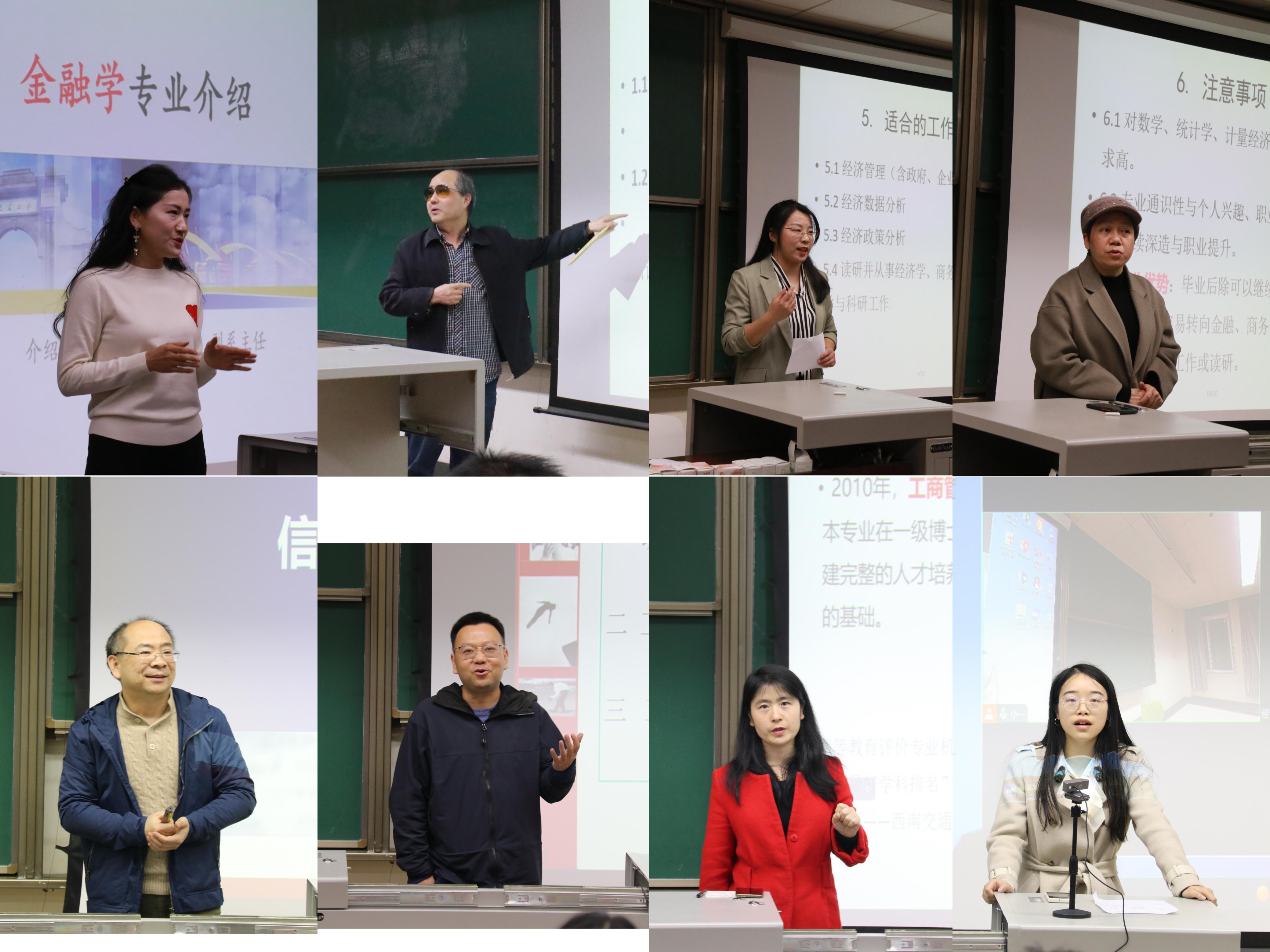 2022级本科生大类内分专业宣讲会在九里校区4号教学楼J4310、J4318、J4319教室进行。学院党委副书记杨宏毅,经济学系专业负责人窦祥胜、副系主任陈有真、优秀青年教师代表郭丽娟,金融学系副系主任郭姝辛,信息管理与信息系统专业负责人官振中,工程管理系副系主任陆绍凯,工商管理专业负责人范春梅,会计学系优秀青年教师代表刘雨柔,学生工作组辅导员张媛媛、薄慧、王子琦以及本科教育中心副主任尹一出席了会议。会议由本科教育中心漆敏主持。