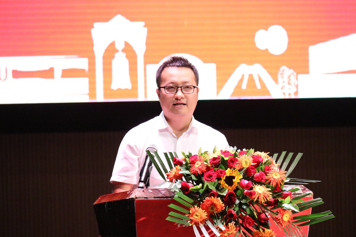大会第四项,专业教师代表诸波发言。诸波老师结合我们现在所处的百年未有之大变局为同学们提出了三个努力方向:一是要学会学习,注重培养融会贯通的能力,努力成为一个跨学科人才;二是要与社会对话,自觉承担相应责任,学会处理人际关系;三是践行绿色生活,强身心并健体魄,保持健康绿色的生活基调。