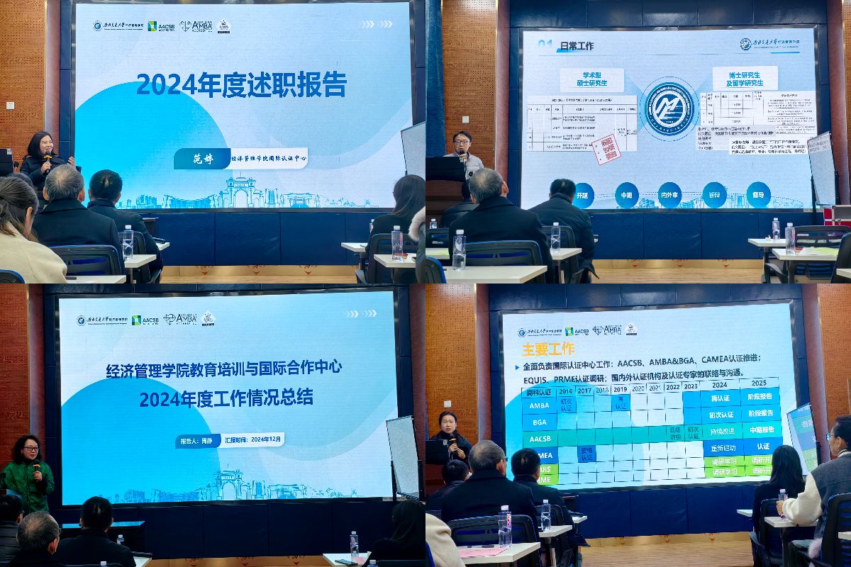 随后, 由各中心正副主任进行述职。学院研究生教育中心、本科生教育中心、专业学位教育中心、国际认证中心、国际交流与合作中心、实验中心等部门的正副负责人对主要工作、亮点与成绩、不足与改进和未来规划进行陈述。