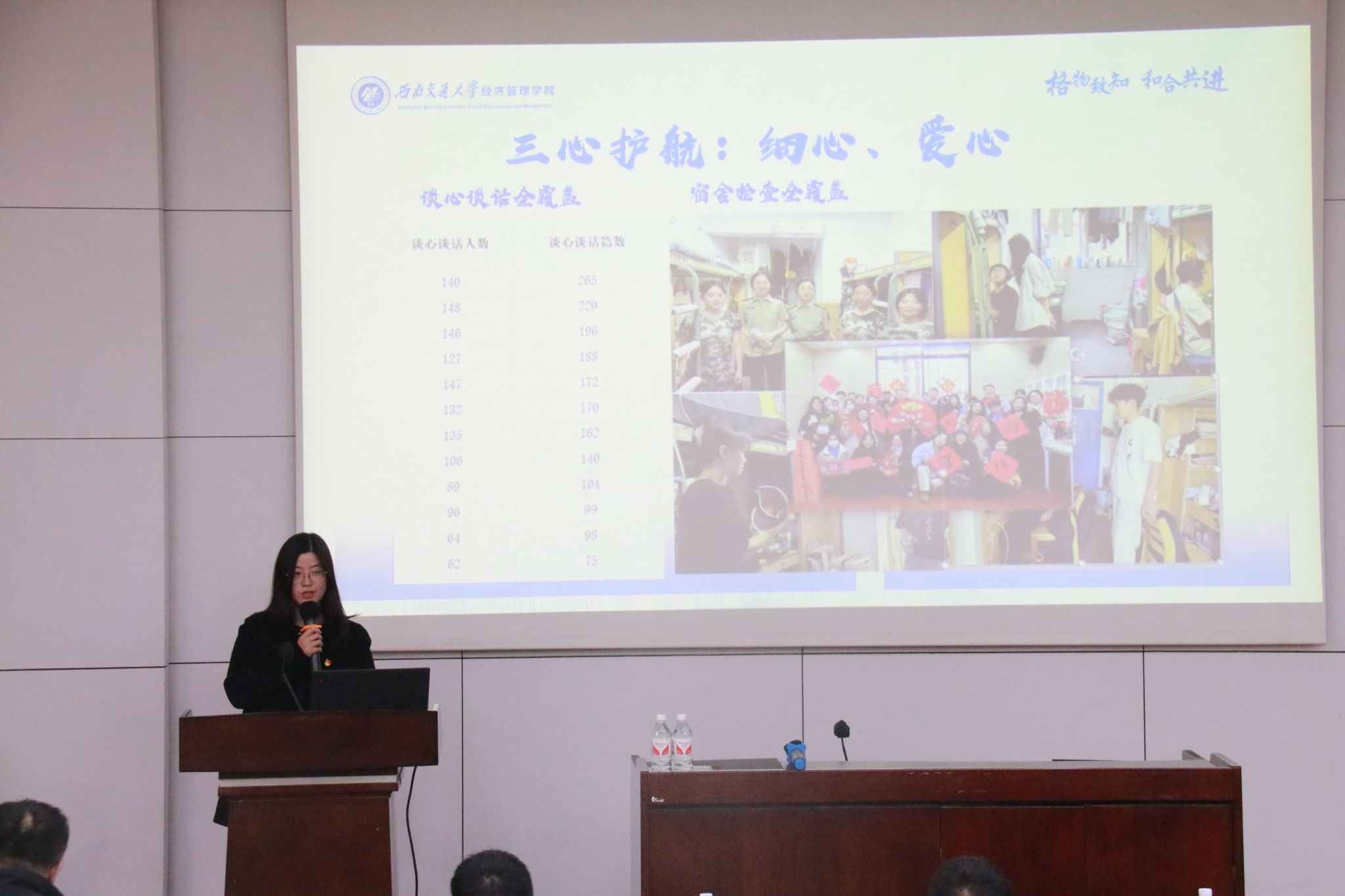 首先,学院科职干部对本年度的工作进行汇报,学院综合事务办公室主任、教师服务办公室主任、学生支持办公室主任、学工组副组长、专职组织员共6名科职干部对本年度的工作进行了总结和反思,并对新一年的工作计划和目标作出了展望。