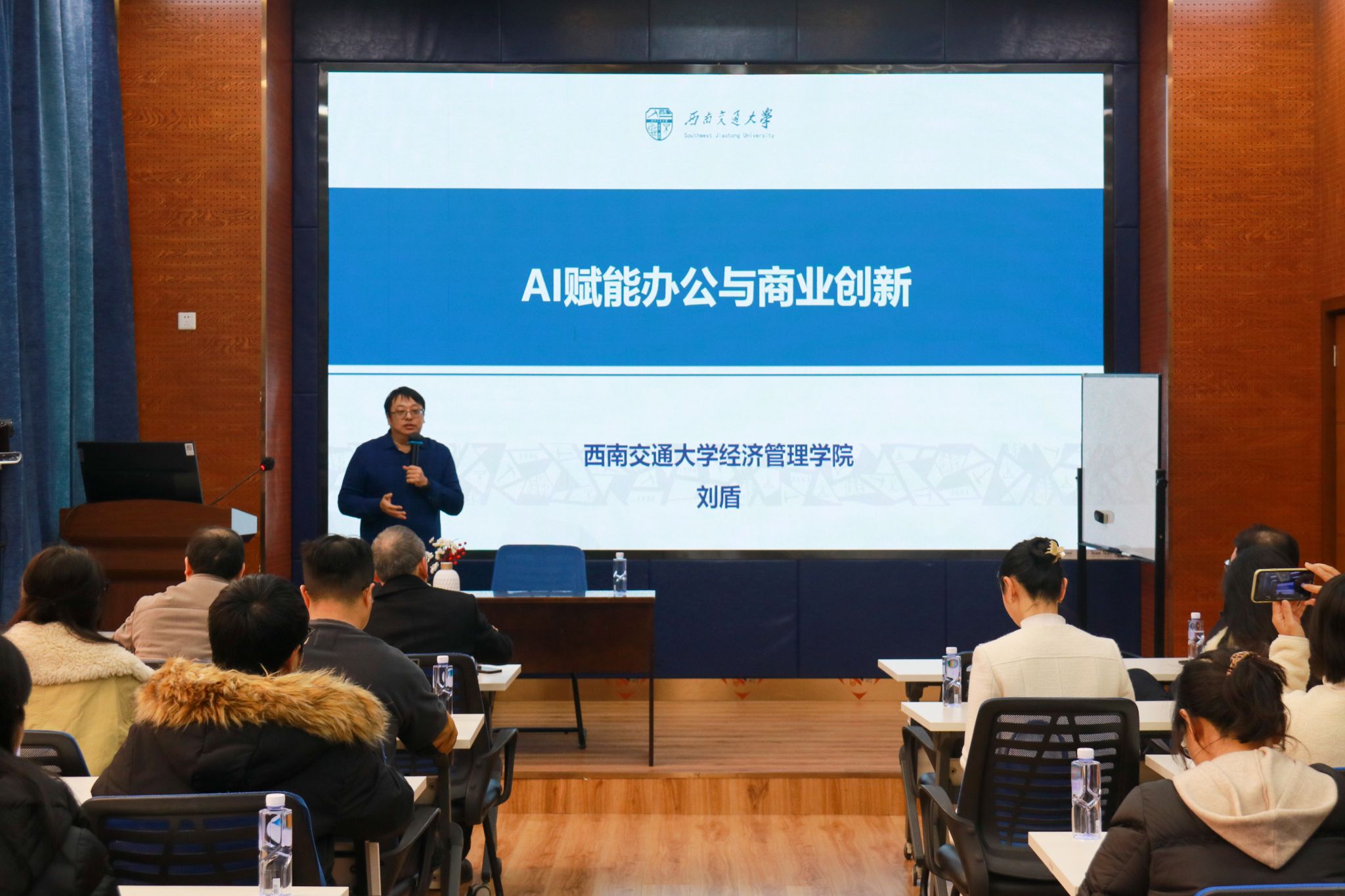 刘盾教授以“AI赋能办公与商业创新”为题开展专题讲座,共同探寻人工智能技术在办公场景优化与商业价值创造中的实践路径与创新可能。本次活动由17吃瓜