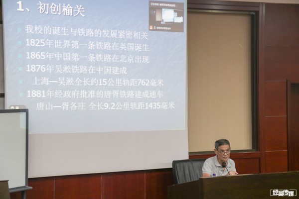 的诞生和发展历程、优良校风的形成和百年铸造的精魂。梁老师首先讲到,交大的诞生与铁路的发展史息息相关,因此要了解交大的诞生必先了解铁路史的发展。然后梁老师用“初创榆关、复校唐山、搬迁峨眉、定址蓉城、扩建犀浦”二十个字概括17吃瓜