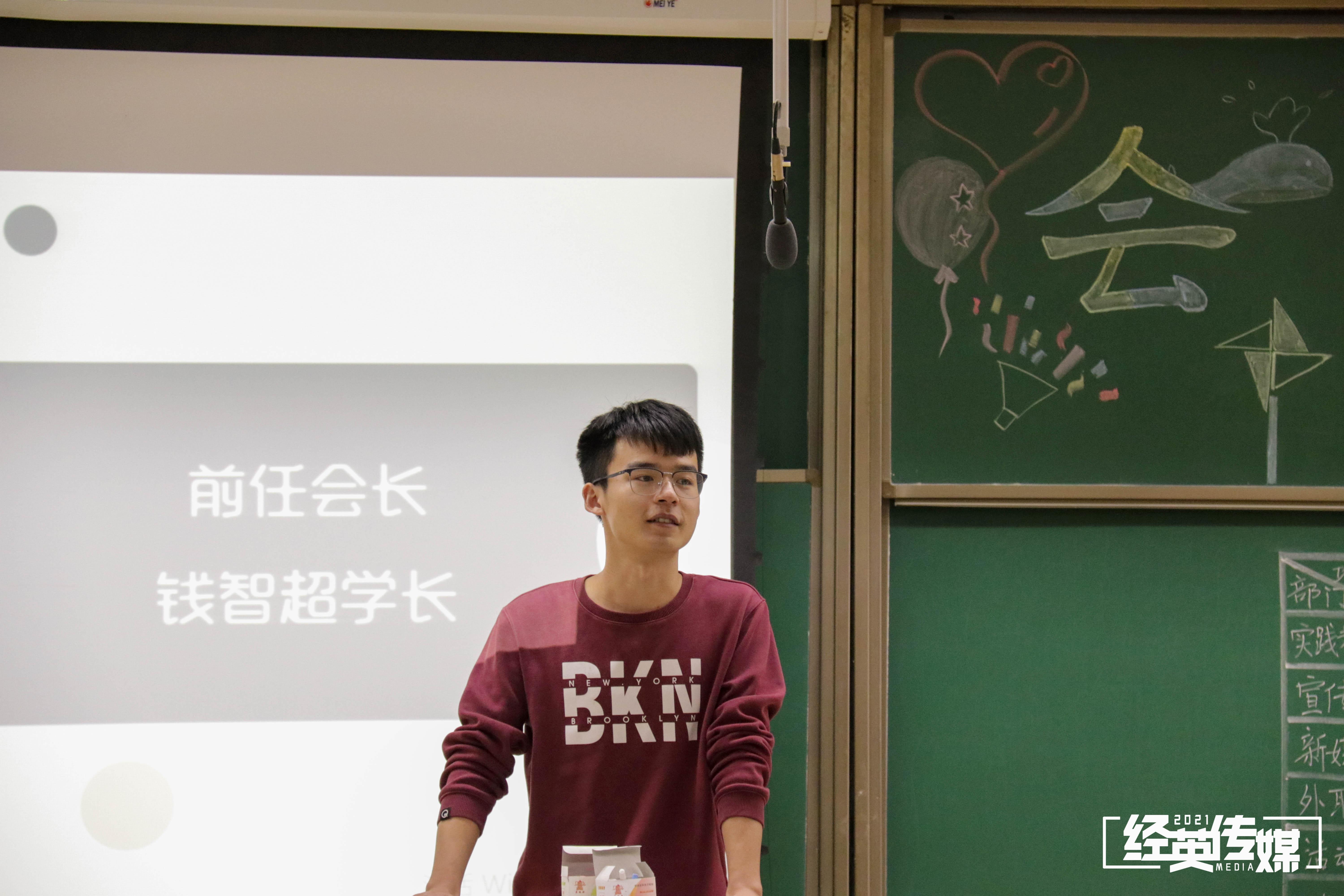 视频结束之后便是经管青协前任会长钱智超同学和现任会长邵琳珺同学的发言。他们都表达了对于自己曾经参加青年志愿者活动的怀念以及对于新会员们的鼓励与期待,并希望新会员们在今后的日子里通过参加志愿活动以提升自己并帮助自己创造美好回忆,将志愿者的路走下去收获不一样的青春。遗憾的是经管青协的指导老师陈建奇因事缺席,但也同样通过会长邵琳珺同学之口表达了对于新会员们的期望与欢迎。