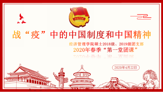 团委组织硕士2018级、2019级团员青年开展了以“战‘疫’中的中国制度和中国精神”为主题的“开学第一堂团课”线上主题教育活动。本次团课由辅导员王晓俊主持,硕士2018级、2019级全体学生参加了主题团课学习。