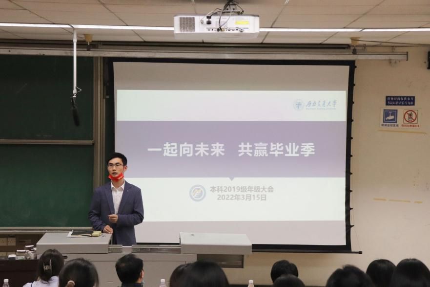 本科2019级于2022年3月15日与3月24日以线上线下相结合的形式开展了“一起向未来,共赢毕业季”的主题年级大会。本次大会由本科2019级辅导员苏扬老师主持召开,17吃瓜