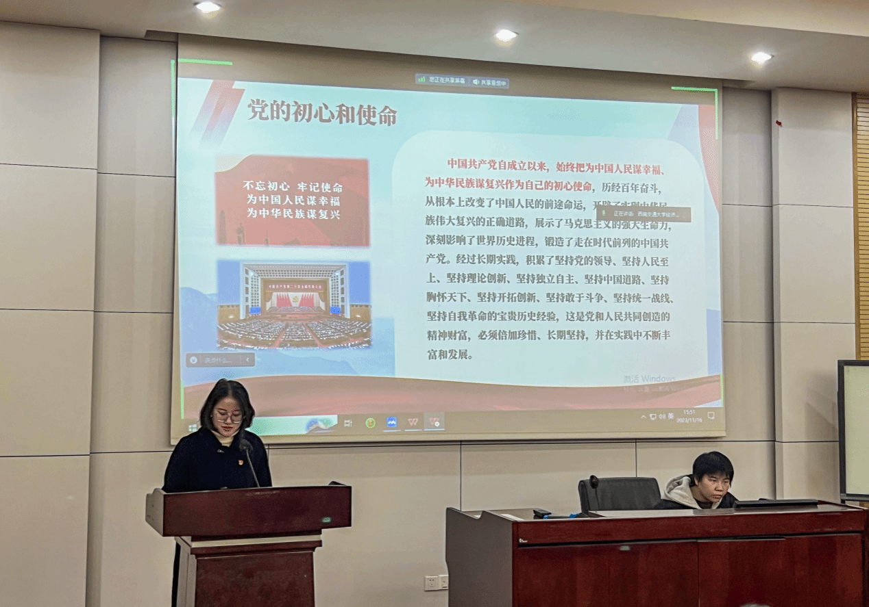 本科第四党支部书记张先凌老师总结发言,她希望将来各党支部间也能有更多的共建与交流,互促共进。张老师指出,当代青年的人生黄金期与实现第二个百年奋斗目标的伟大征程完整契合,有着难得的人生际遇,是实现民族复兴的有生力量。希望各位同志在以中国式现代化全面推进中华民族伟大复兴的新征程上要心怀“国之大者”,矢志砥砺奋斗,锤炼品格修为,把自己的小我成长融入祖国的大事业中去,在扎根基层、助力乡村振兴乃至各行各业,把党员的先锋模范作用发挥在方方面面,在各领域工作中争当排头兵和生力军,奉献自我,展现青春的朝气锐气。