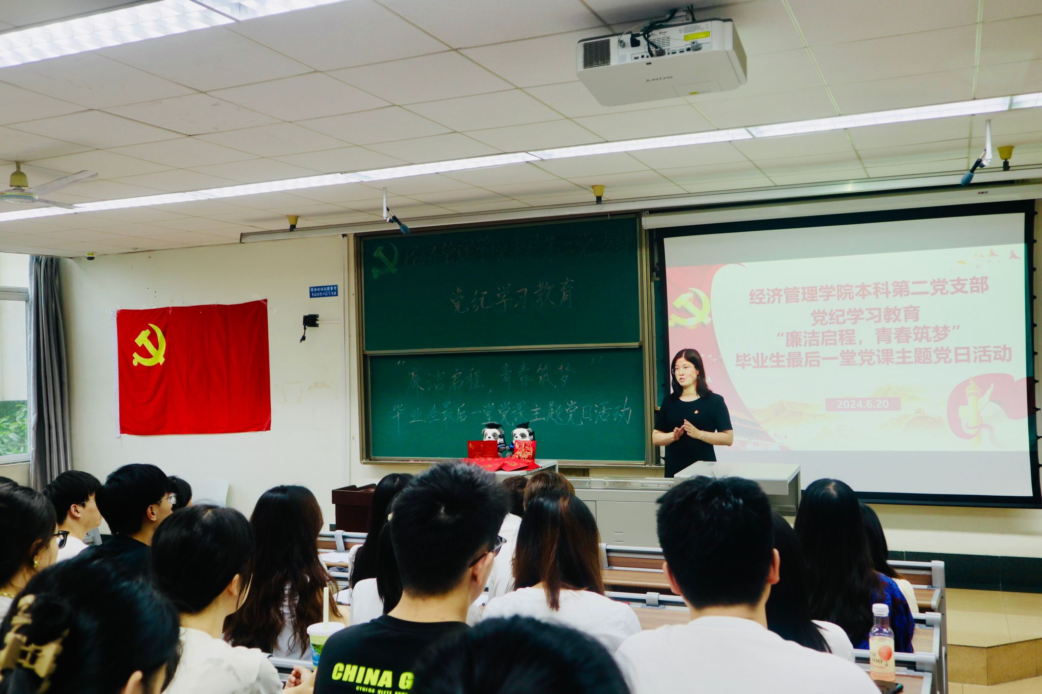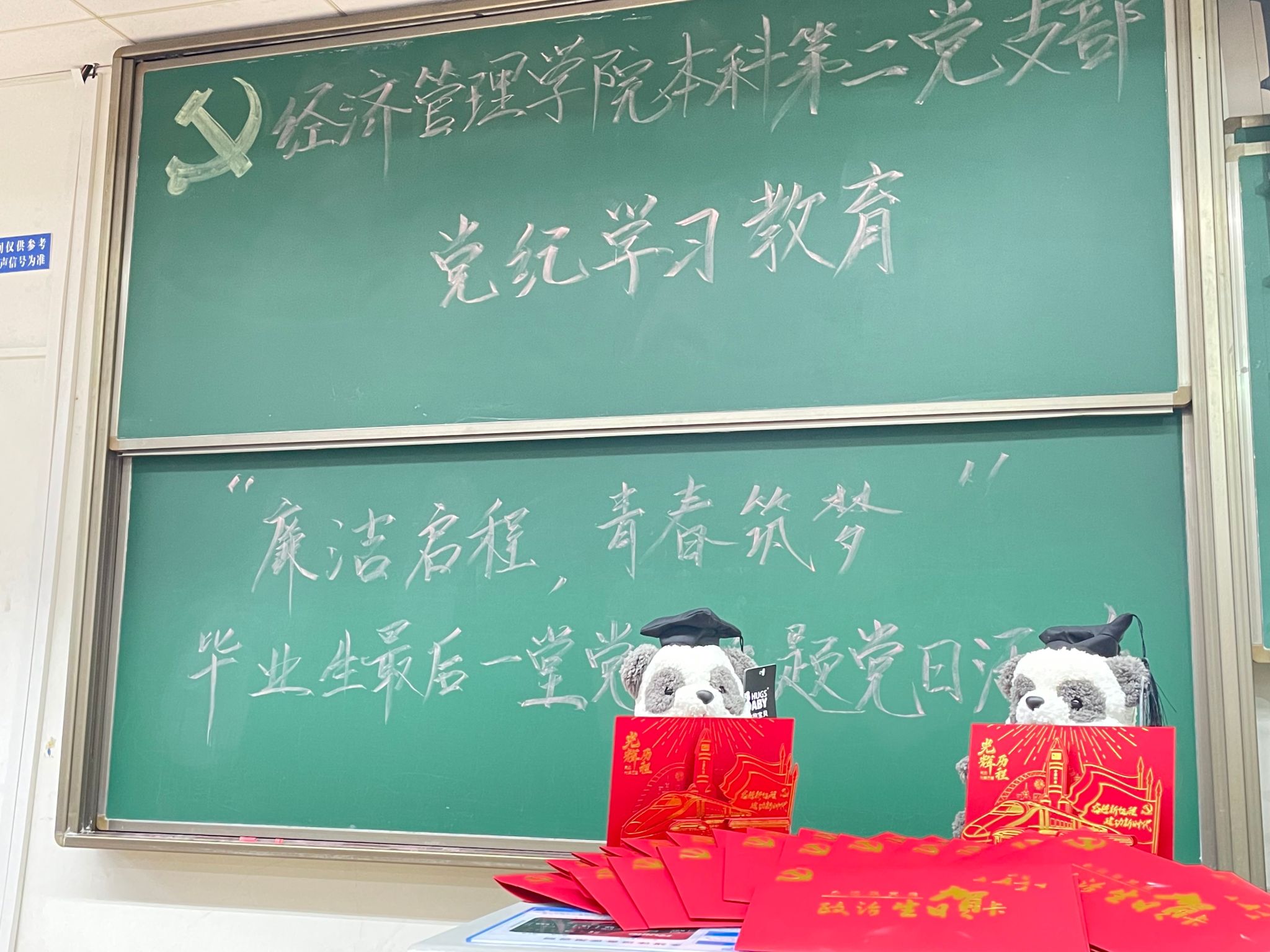 本科第二党支部于J4310开展党纪学习教育——“廉洁启程,青春筑梦”毕业生最后一堂党课主题党日活动。